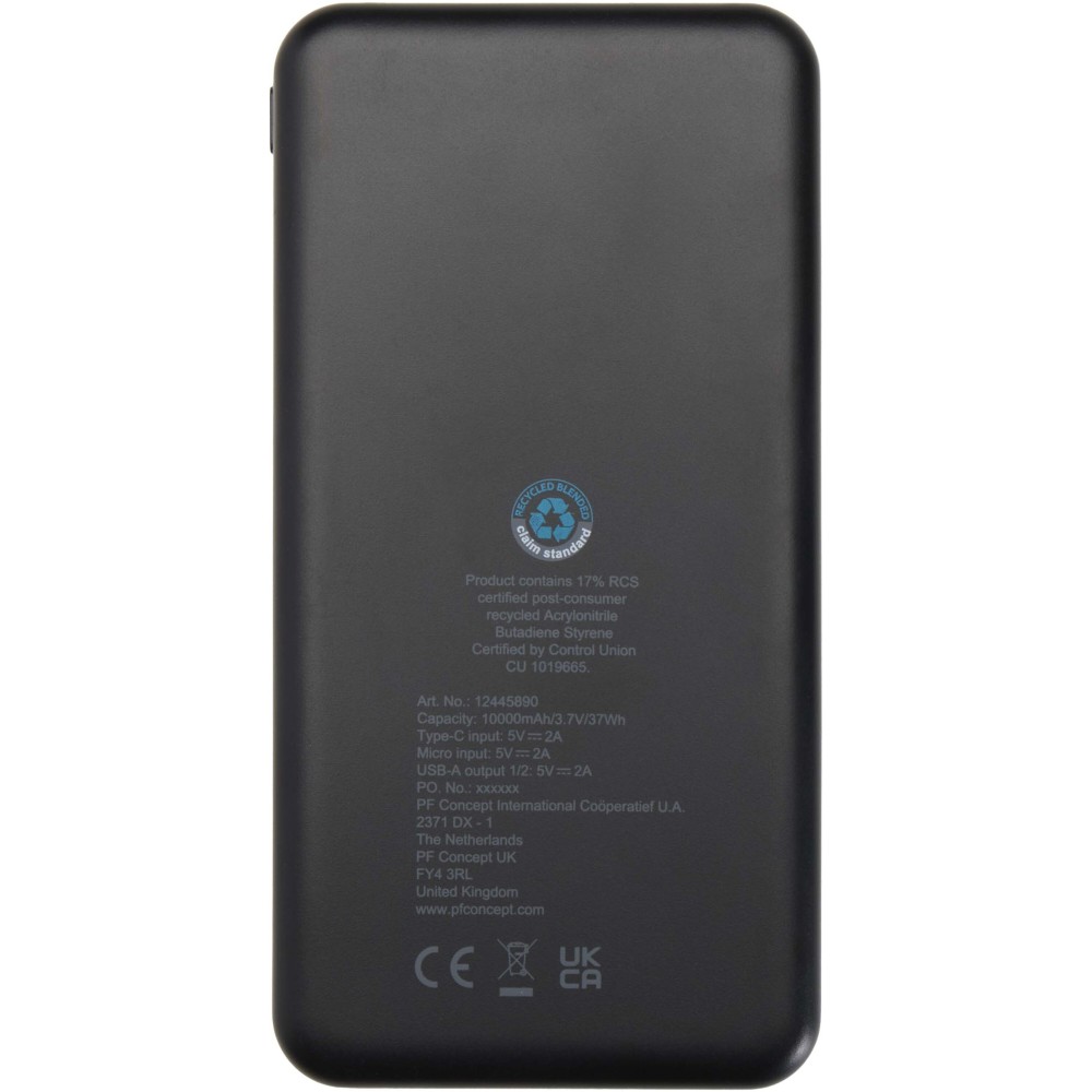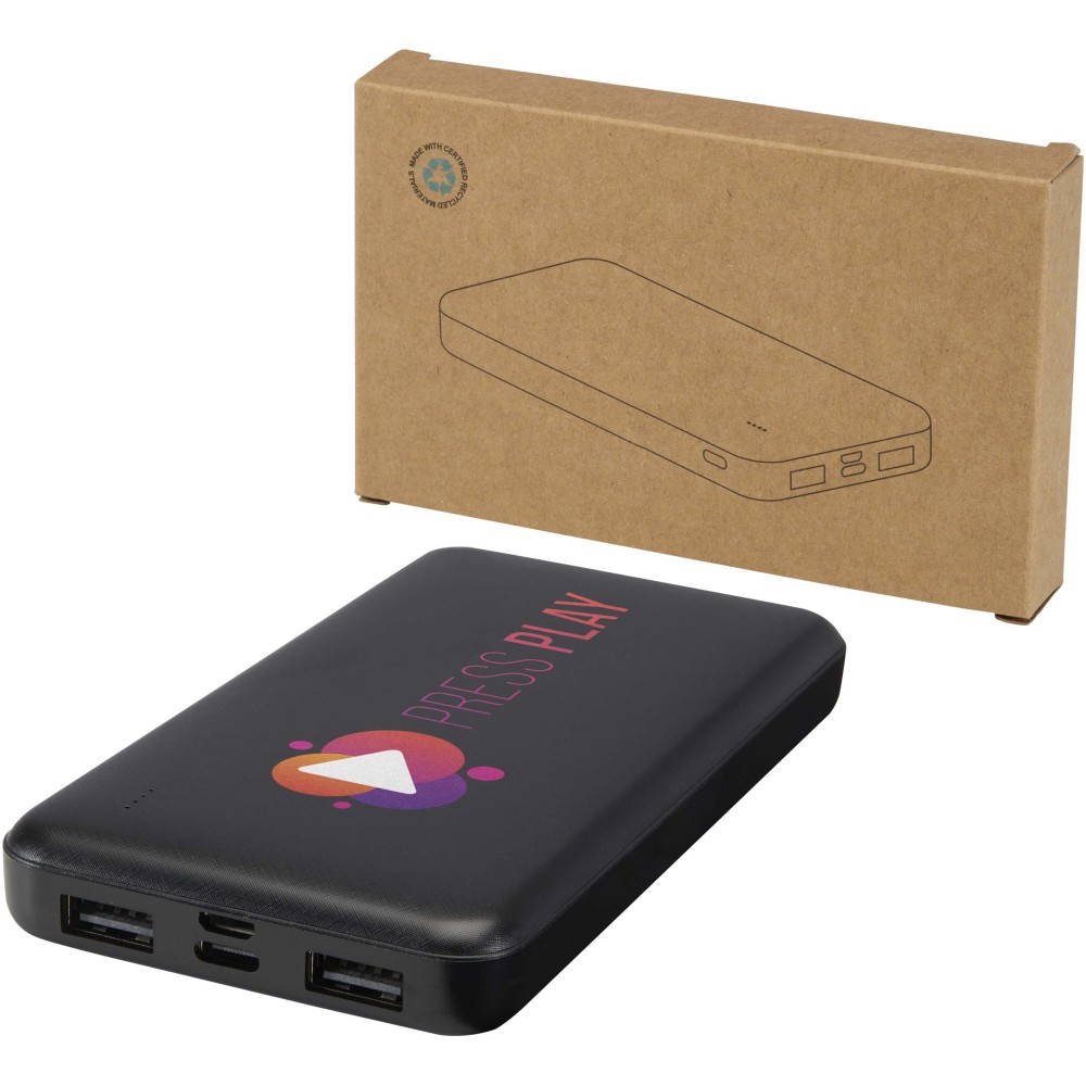 Az Intan 10.000 mAh-s powerbank újrahasznosított műanyagból készül, megbízható energiát biztosítva egész napra. Két USB-A kimeneti porttal, egy Type-C bemenet/kimenettel és egy micro-USB bemenettel rendelkezik, így sokoldalú töltési lehetőségeket kínál. Karcsú kialakítása modern megjelenést ad, az integrált LED-jelző pedig egyértelműen mutatja a töltési állapotot.