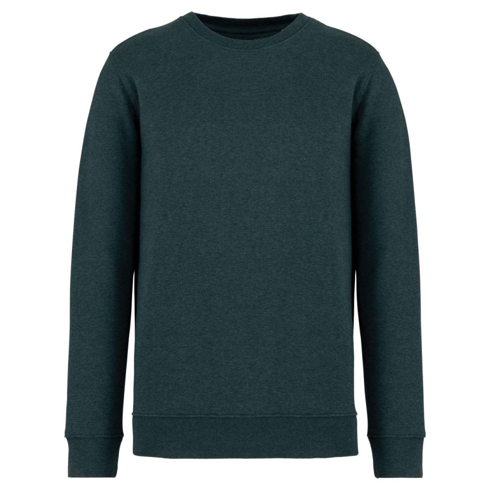 85 % bio, fésült pamutból és 15 % újrahasznosított poliészterből készült. Unisex. Egyenes szabás. LSF (Low Shrinkage Fleece: előzsugorított polár). Kerek nyakkivágás. Félhold alakú. Méretcímke organikus pamut és újrahasznosított poliészter logóval. 1x1 bordás nyakpasszé, alsó szegély és kézelő. Duplaöltés a kézelőn, karöltőben és kézelőn. Egyszeres felülvarrás a nyakkivágáson. Belső szalagozott nyakrész. A nyakrészen nincs márkajelzés, csak méretcímke a könnyebb dekorálás érdekében. A ruhadarabhoz kartonpapírból készült ismertetővel, amely felsorolja a felhasznált környezetbarát anyagokat. OEKO-TEX N CQ1007/7 STANDARD 100 tanúsítvánnyal rendelkezik. IFTH. 350 g/m2.