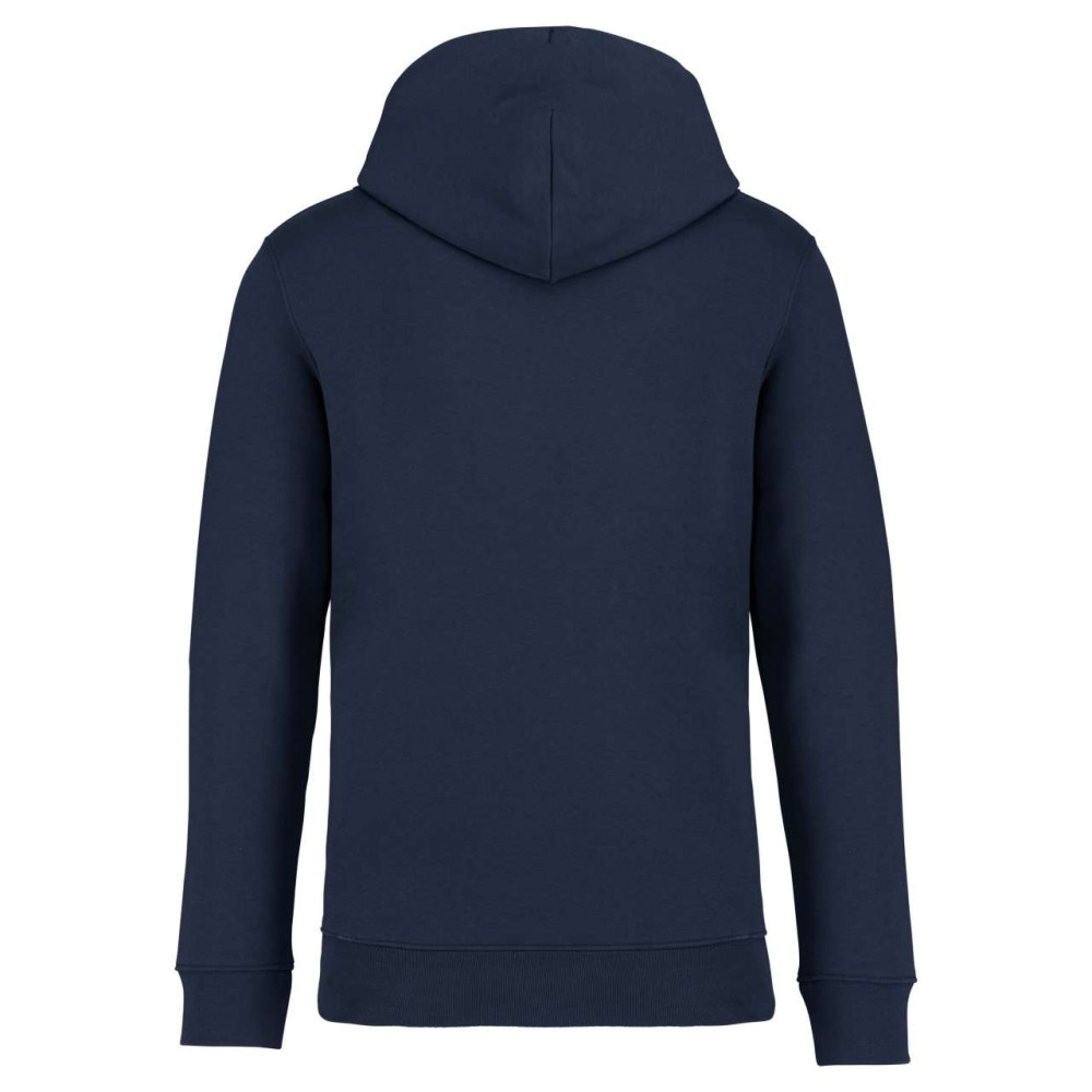 85 % bio, fésült pamutból és 15 % újrahasznosított poliészterből készült. Unisex. Egyenes szabás. Méretcímke organikus pamut és újrahasznosított poliészter logóval. LSF (Low Shrinkage Fleece: előzsugorított polár) kezelés. Kapucni. 1x1 bordás szegély és kézelő. Duplatűzés a kézelőn, a szegélyen és a nyaknál. Szalagozott nyakbelső hátul. Bélelt kapucni, a nyaknyíláson nincs felülvarrás, csak egy megkötés, hogy a húzózsinór a felső részen maradjon. Kerek húzózsinór a kapucnin fém véggel. Kenguru zseb. Nincs márkajelzés a nyakrészen, csak egy méretcímke a könnyű dekorálás érdekében. Karton függőcímkével érkezik, amely felsorolja a termék előállításához felhasznált környezetbarát anyagokat. Organikus pamutfonal. OEKO-TEX N CQ1007/7 STANDARD 100 tanúsítvánnyal rendelkezik. IFTH. 350 g/m2.