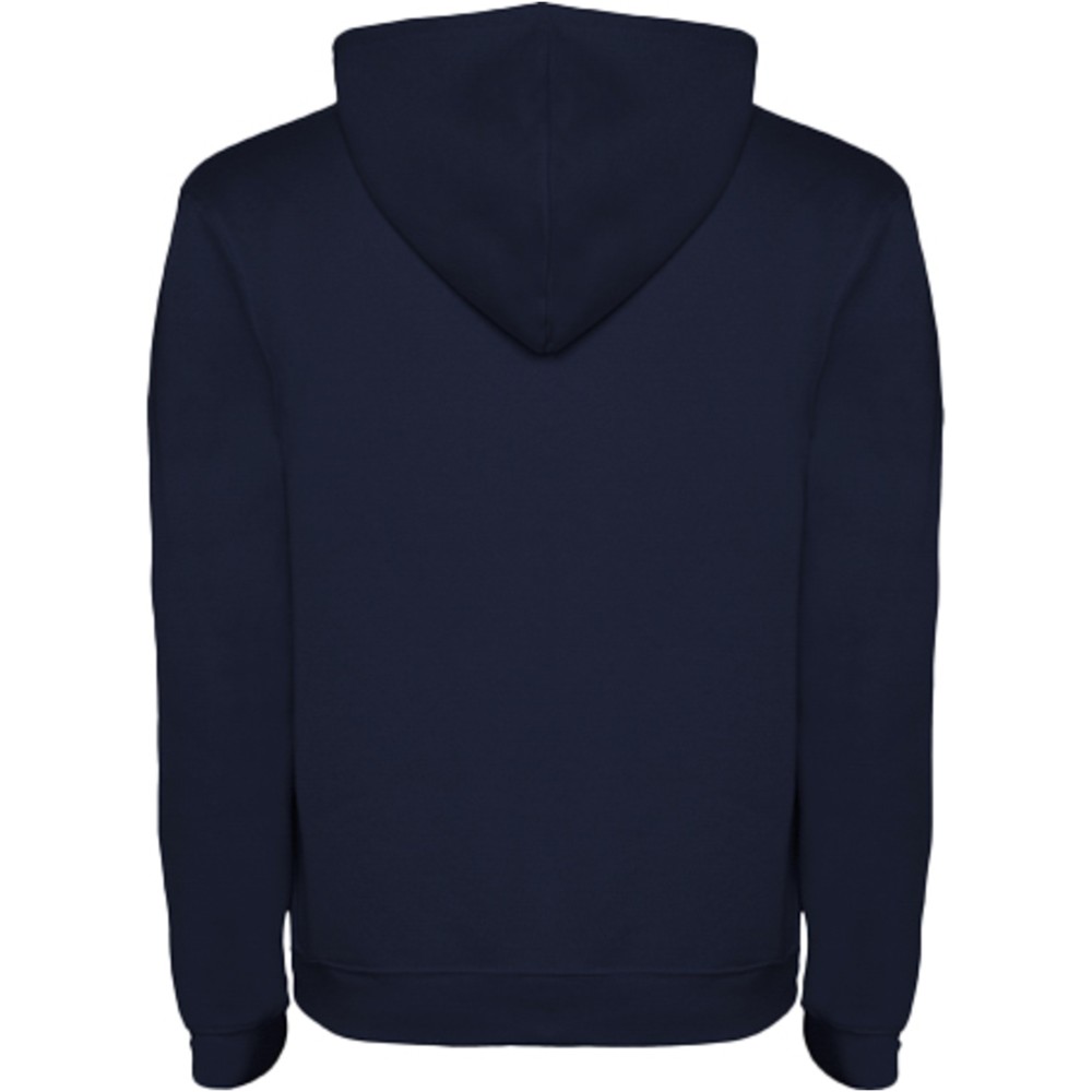 Kapucnis, duplarétegű pulóver állítható húzózsinórral, nyaki szalagerősítéssel és kenguru zsebbel. 1x1 bordás alj- és kézelőpasszé. 50% pamut és 50% poliészter, 280 g/m2.