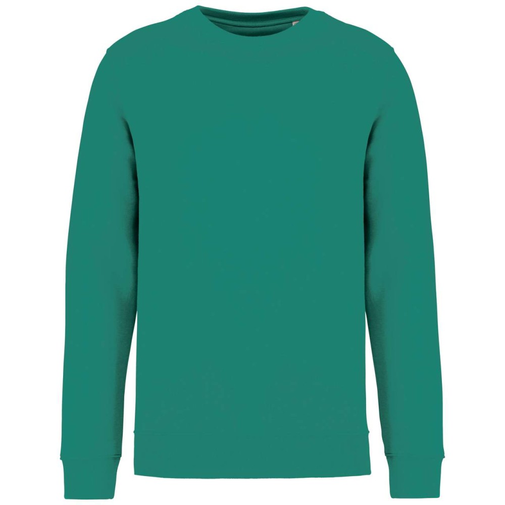 85 % bio, fésült pamutból és 15 % újrahasznosított poliészterből készült. Unisex. Egyenes szabás. LSF (Low Shrinkage Fleece: előzsugorított polár). Kerek nyakkivágás. Félhold alakú. Méretcímke organikus pamut és újrahasznosított poliészter logóval. 1x1 bordás nyakpasszé, alsó szegély és kézelő. Duplaöltés a kézelőn, karöltőben és kézelőn. Egyszeres felülvarrás a nyakkivágáson. Belső szalagozott nyakrész. A nyakrészen nincs márkajelzés, csak méretcímke a könnyebb dekorálás érdekében. A ruhadarabhoz kartonpapírból készült ismertetővel, amely felsorolja a felhasznált környezetbarát anyagokat. OEKO-TEX N CQ1007/7 STANDARD 100 tanúsítvánnyal rendelkezik. IFTH. 350 g/m2.