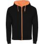 Roly Fuji uniszex cipzáros pulóver, Solid black, Fluor Orange