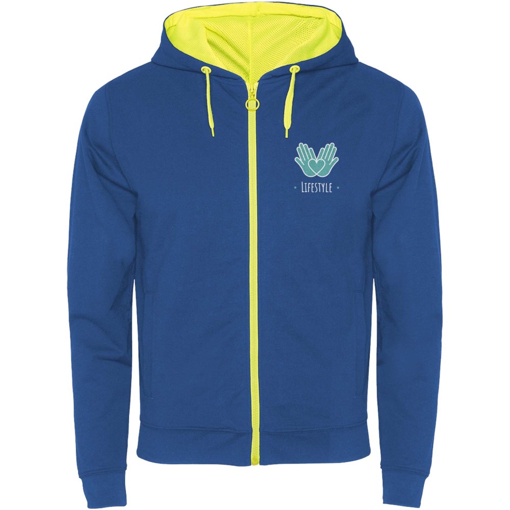 Roly Fuji uniszex cipzáros pulóver, Royal blue, Fluor Yellow
