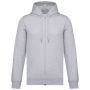 50% gyűrűs fonású pamut / 50% újrahasznosított poliészter, fésült pamut. Egyenes szabású, vágott és varrott. 1x1 bordás kötés a nyakkivágás, a mandzsetta és az alsó szegély jobb megjelenése érdekében. Kenguruzseb, nylon cipzár. Policotton dzsörzé bélésű kapucni lapos húzózsinórral. Színben illeszkedő dzsörzé szalagos belső a nyakkivágásnál. Csak méretcímke márkajelzés nélkül.