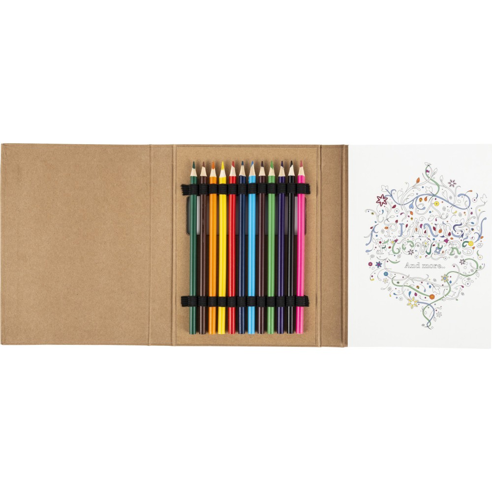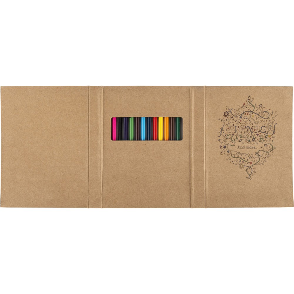 Színezőfüzet felnőttek számára 50 lappal és 12 színesceruzával. 70 g/300 g papír.