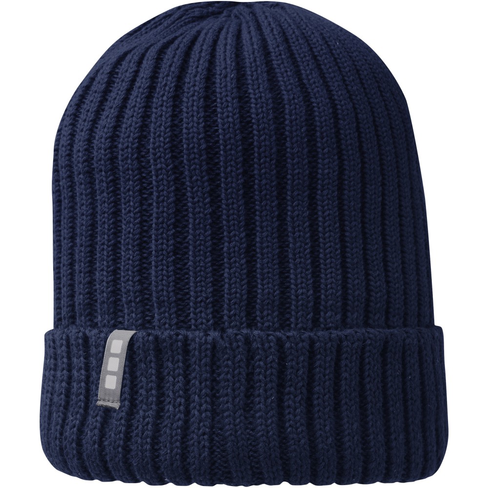Egyrétegű sapka visszahajtókával, bevarrt márkajelzéssel. 2x2 bordás anyag. Organikus pamut.