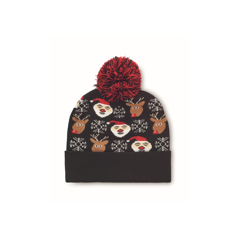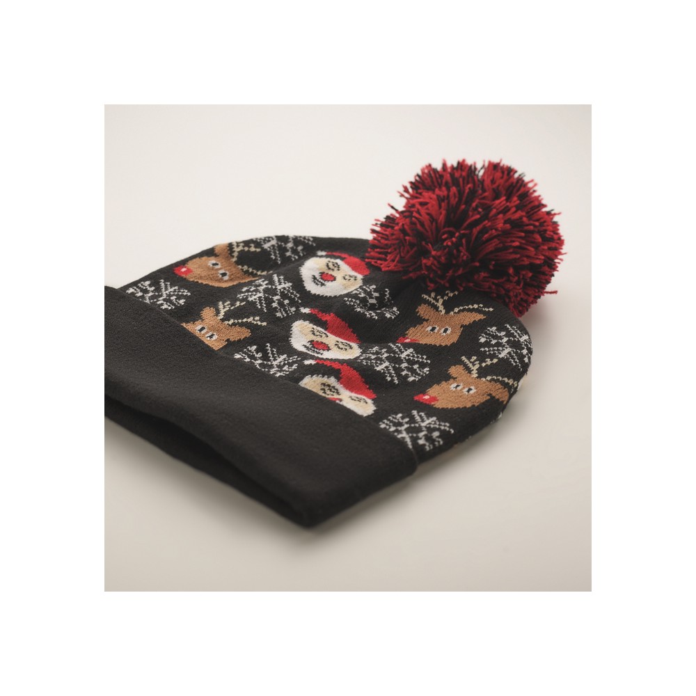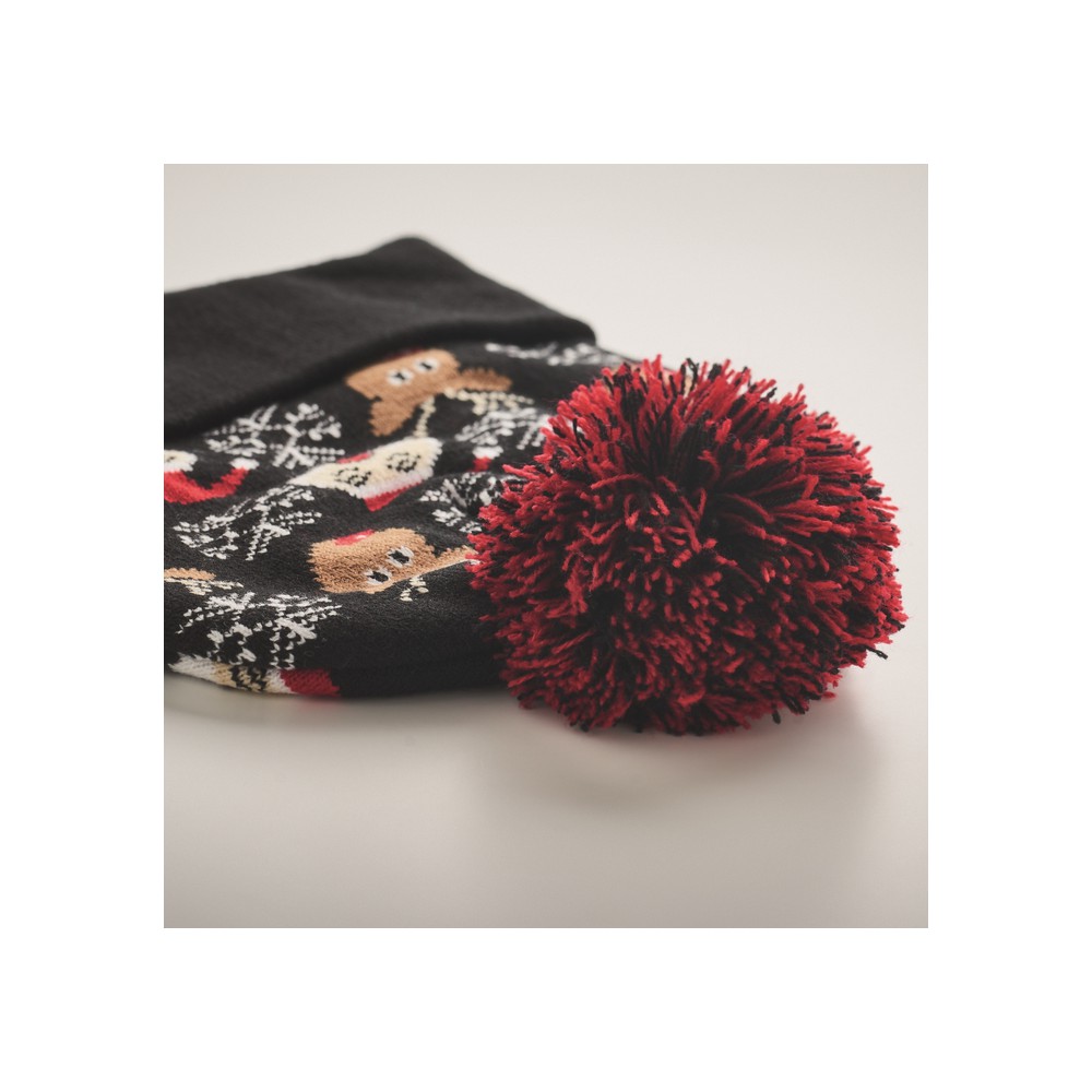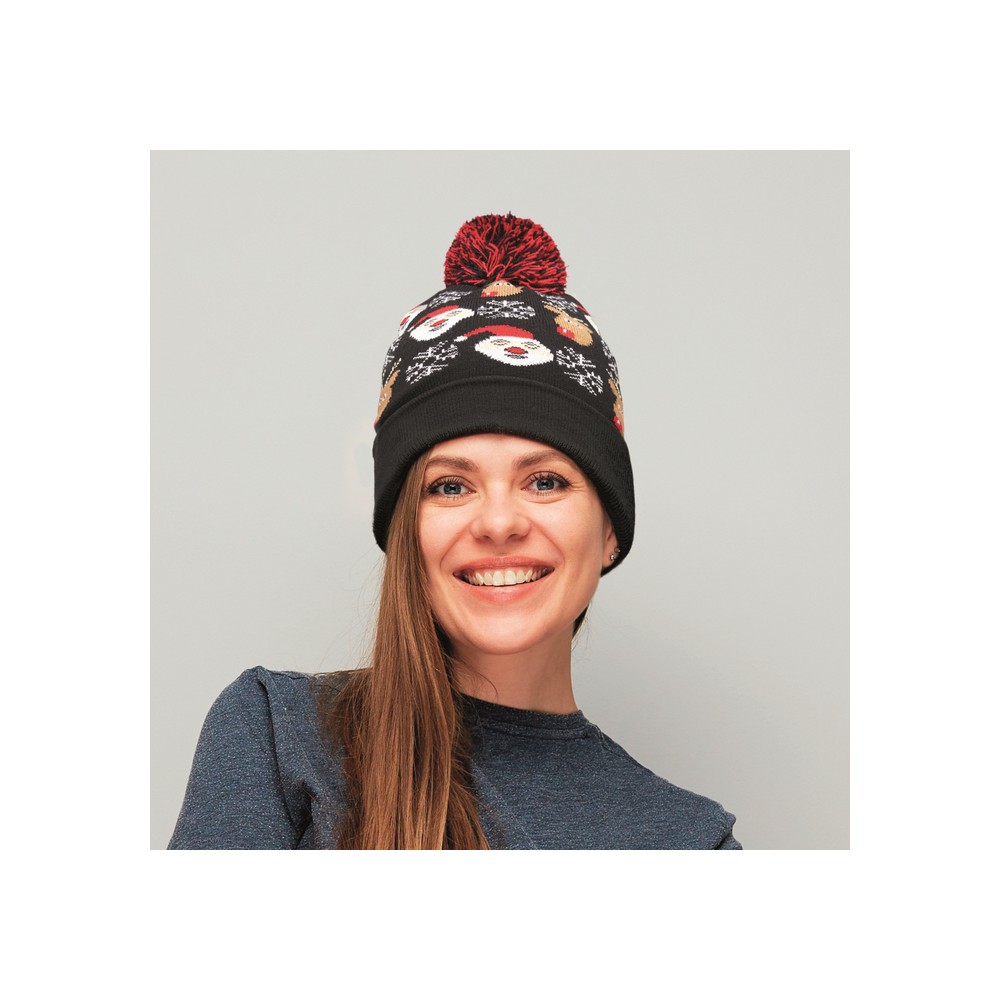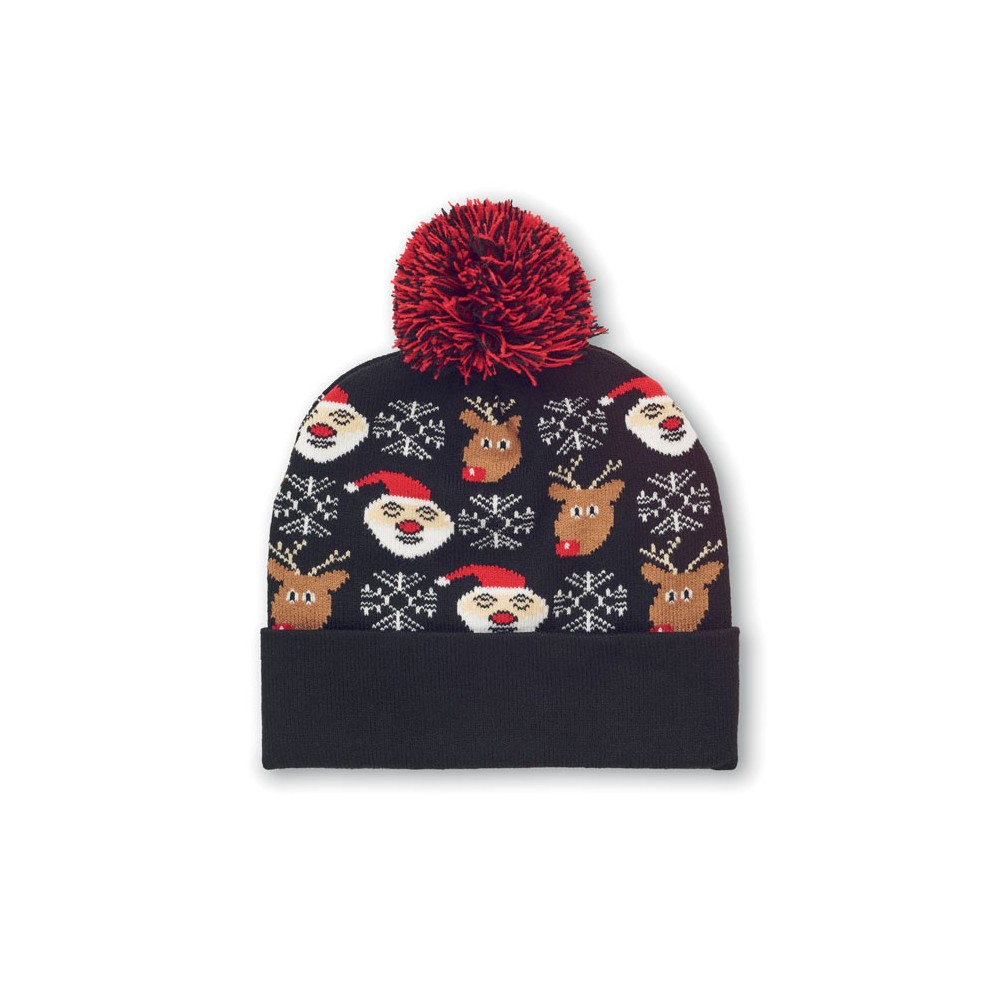 Karácsonyi kötött sapka mandzsettás aljjal, bojttal, puha, rugalmas akril anyagból.