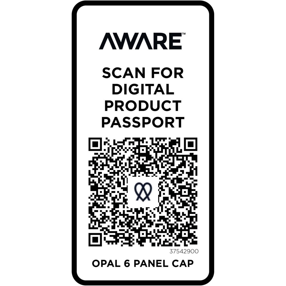 Az Opal 6 paneles sapka 70%-ban újrahasznosított pamutból és 30%-ban újrahasznosított poliészterből készült. Úgy tervezték, hogy 58 cm-es fejkörfogatnál kényelmesen illeszkedjen, a fémcsatos záródás pedig könnyű és biztonságos beállítást tesz lehetővé. A sapka Cyclo újrahasznosított szálakat tartalmaz, ahol előválogatott hulladékot használnak, amely meghatározza a fonal színét. Ezek a szálak nem csak a szűz erőforrások iránti igényt csökkentik, hanem a körkörös élet iránti elkötelezettséget is mutatják, megtestesítve a hulladékcsökkentés lényegét. Minden sapkához egy Aware nyomjelző is tartozik. Ez az innovatív funkció lehetővé teszi a felhasználók számára, hogy egy QR-kód segítségével nyomon követhessék a termék eredetét és útját, növelve az ellátási lánc átláthatóságát, és elősegítve a termék és a gyártási folyamat közötti szorosabb kapcsolatot.