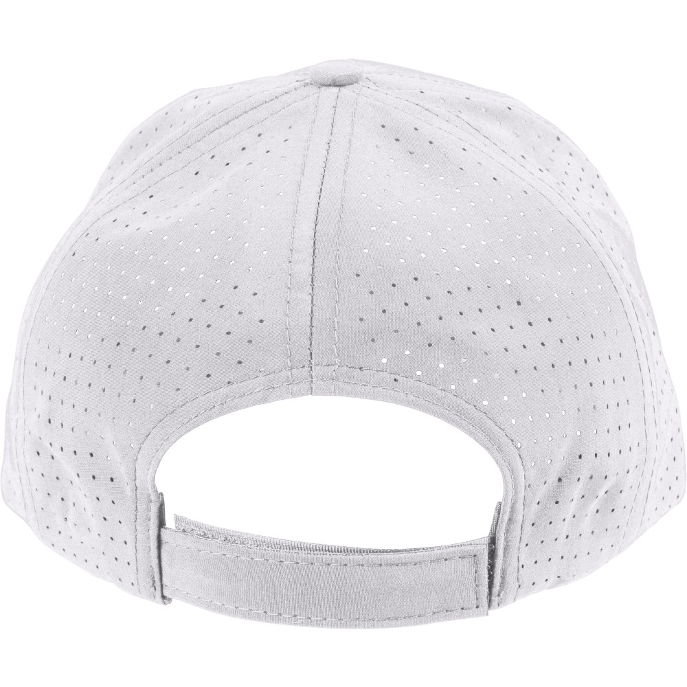 7 paneles poliészter baseballsapka lézervágott szellőzőnyílásokkal a hátsó paneleken. 7 cm-es ellenzővel, tépőzárral állítható pánttal, PU címke nélkül.