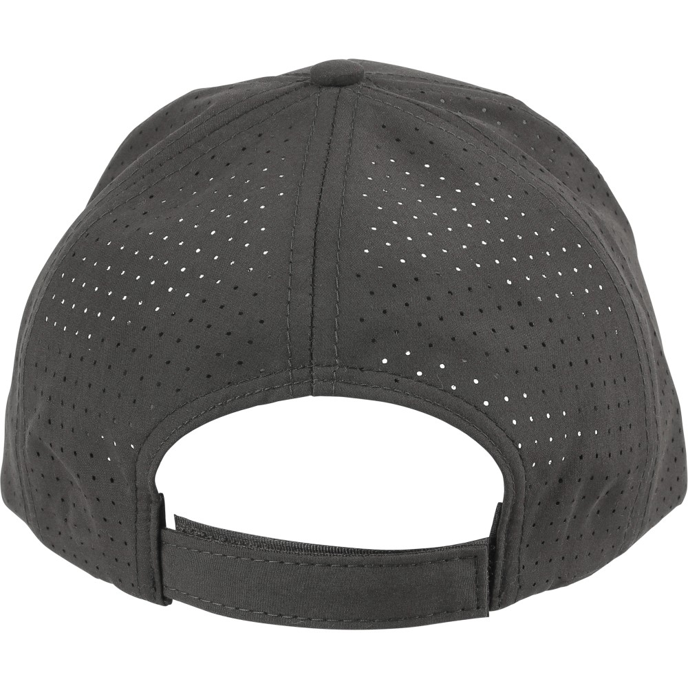 7 paneles poliészter baseballsapka lézervágott szellőzőnyílásokkal a hátsó paneleken. 7 cm-es ellenzővel, tépőzárral állítható pánttal, PU címke nélkül.