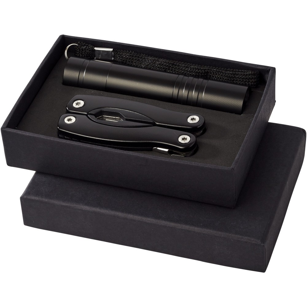 Scout többfunkciós szerszám és lámpa készlet, fekete