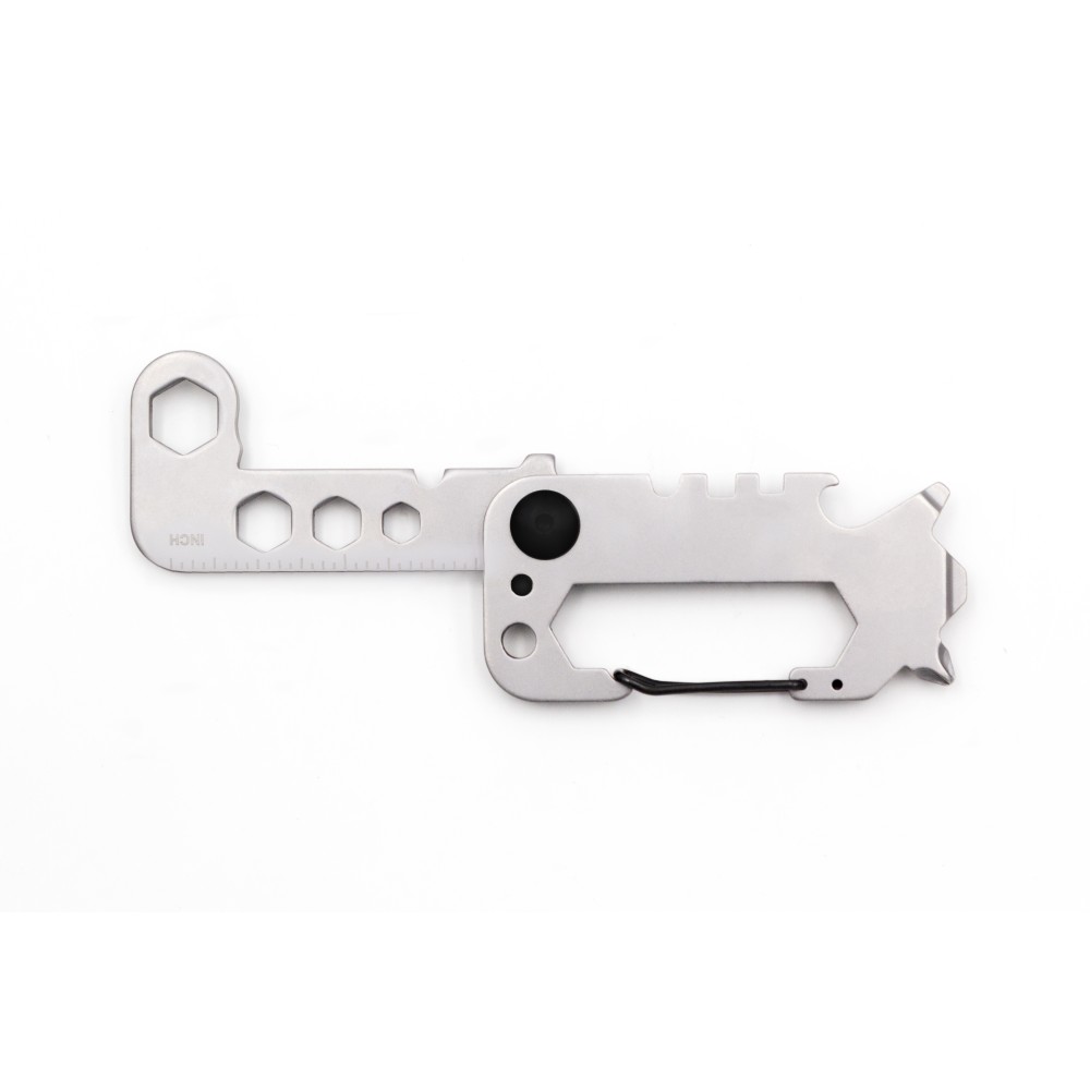 Az edzett 420-as martenzites rozsdamentes acélból készült Twist többfunkciós szerszám bicikliseknek is. 8 alapvető szerszámot egyesít egy kompakt csavaros kialakításban, amely kényelmesen illeszkedik a kezedbe. Ez a sokoldalú eszköz tartalmaz egy drótvágót, kerékpárküllős csavarkulcsot, több villáskulcsot (5,5-12 mm), kulcstartót, sörnyitót, karabinerkampót, csillagfejű és lapos csavarhúzókat, valamint egy vonalzót. Fekete dobozba csomagolva puha habszivacs betéttel a védelem érdekében, egyszerre elegáns és praktikus, ideális a mindennapi feladatokhoz.
