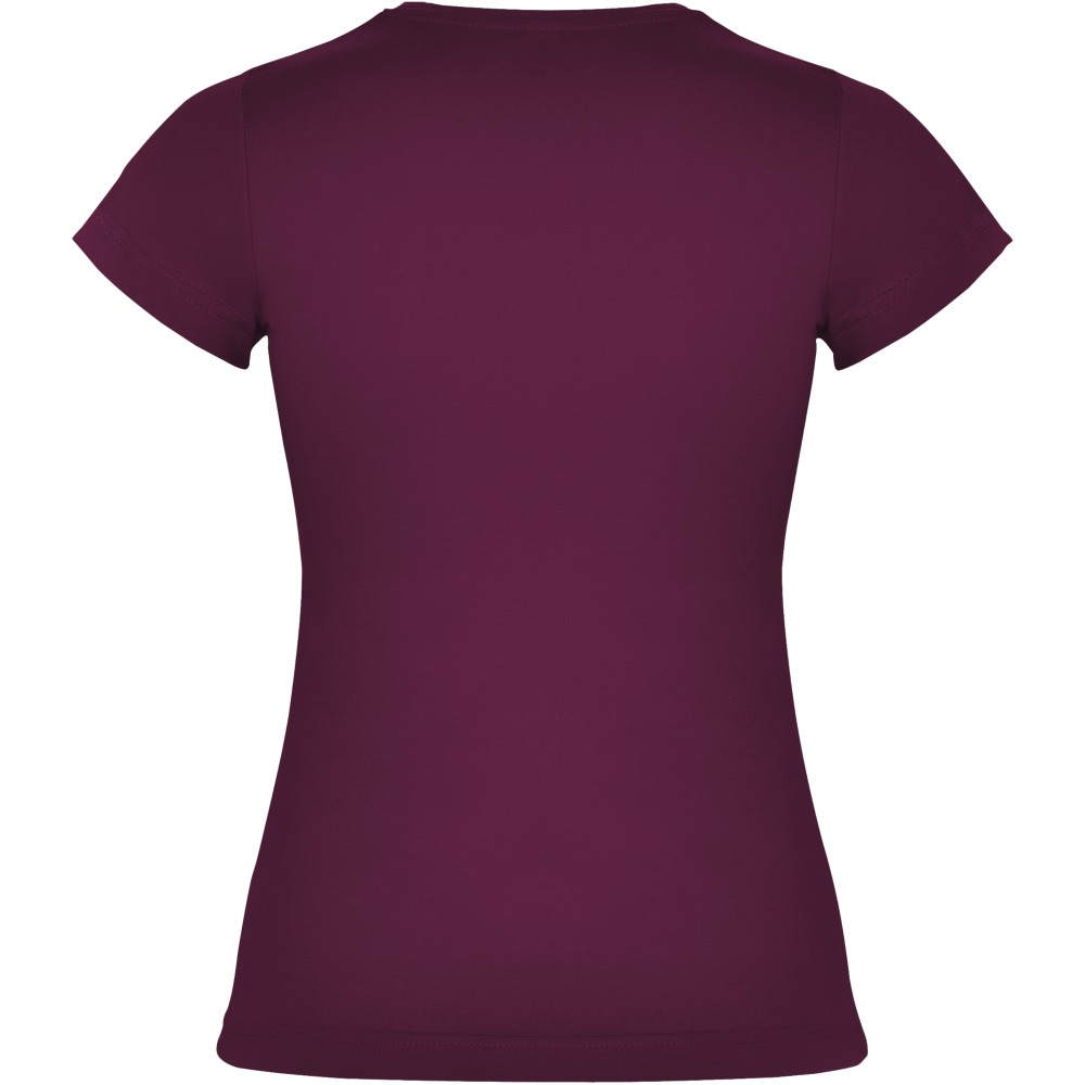 Rövidujjú, karcsúsított, oldalvarrott női póló. 1x1 dupla rétegű bordás nyak és válltól vállig tartó fedett varratok. 100% pamutból készült, 155 g/m2 súlyú, egyrétegű Jersey kötés.