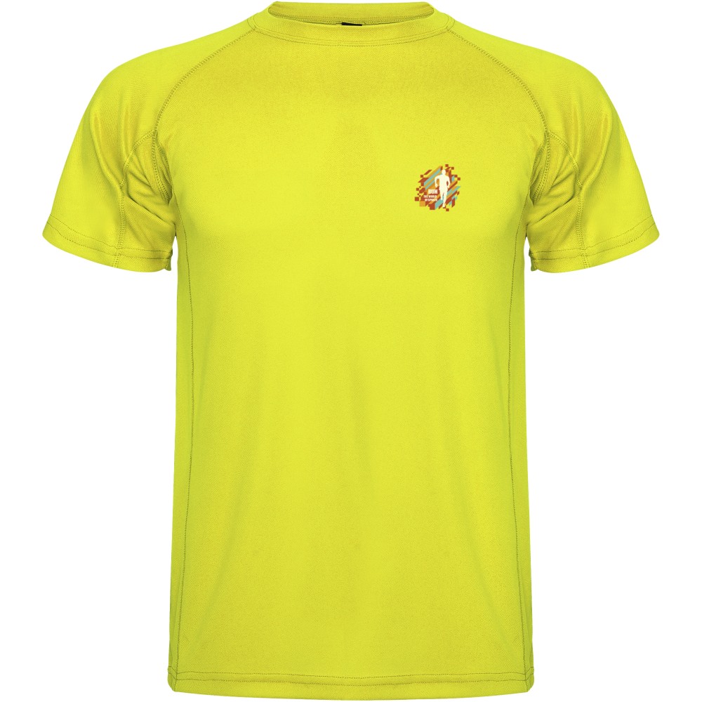 Rövidujjú technikai raglánujjú póló. Kerek nyak, fedett varrásokkal. Oldalsliccek. Könnyen mosható és szárítható, lélegző anyag. UV-védelem. Piqué 100% poliészterből, 150 g/m2.