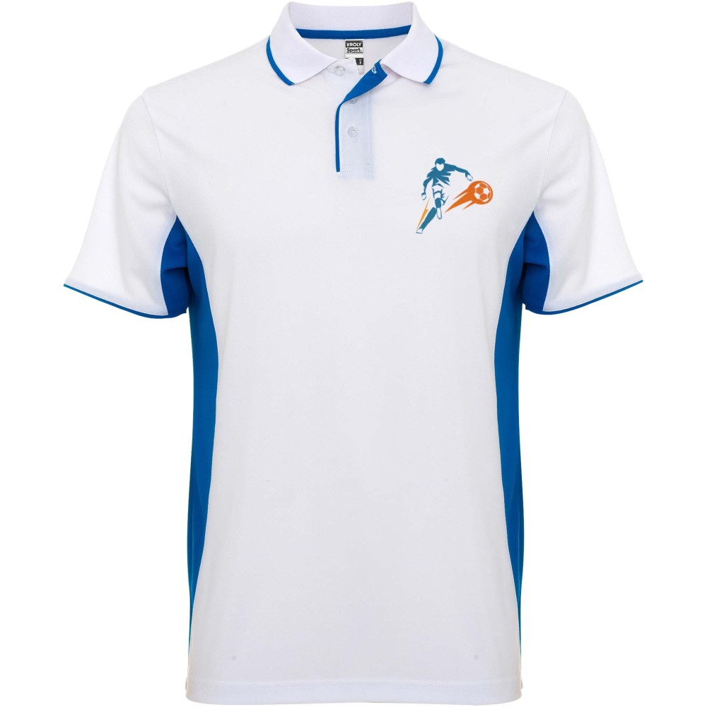 Roly Montmelo rövid ujjú uniszex sportpóló, white, royal blue