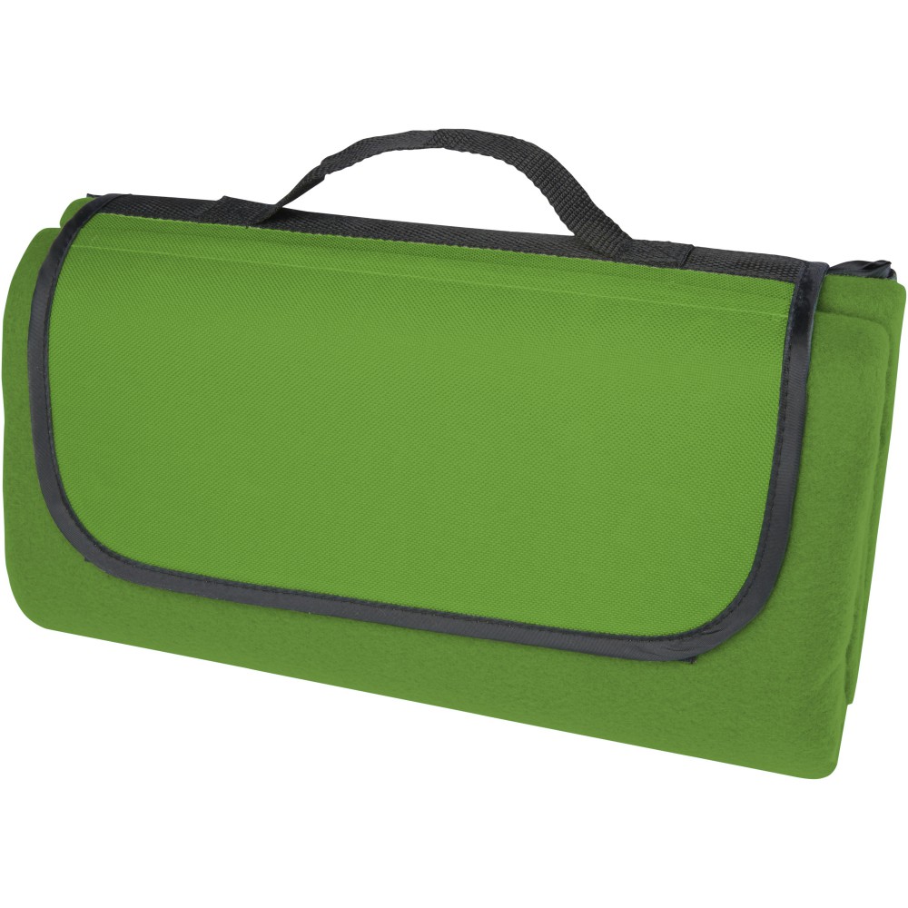 Vízálló, 140 g/m2-es pikniktakaró újrahasznosított PET műanyagból, fenntartható választás. Összecsukva és rögzítve a takaró könnyen tárolható és hordozható a mellékelt fogantyúval.
