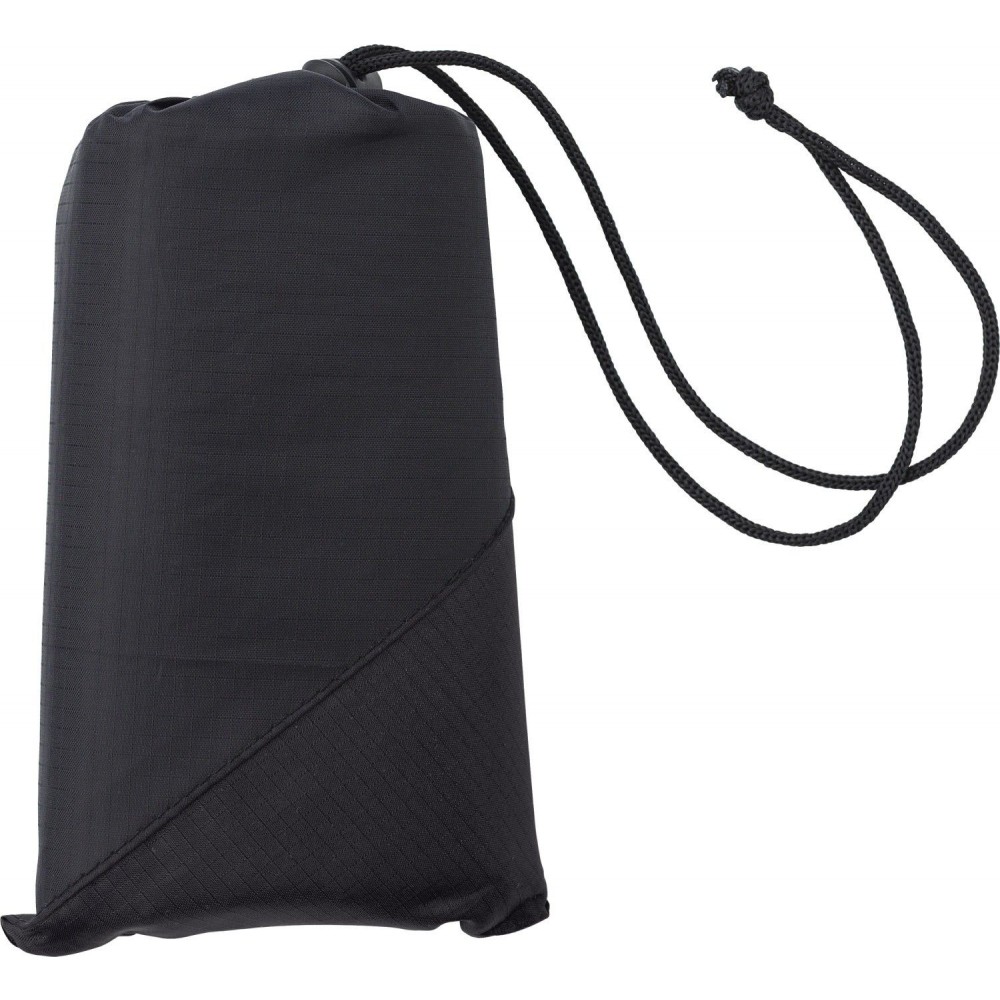 Kis méretre összehajtogatható takaró tokkal. Kiterített méret: 140 x 100 cm. Poliészter.