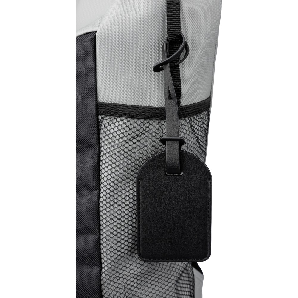 Újrahasznosított PU anyagból készült poggyászazonosító beépített Apple FindMy nyomkövetővel és a személyes adtok elhelyezésére szolgáló résszel. Csomagolása kraftpapír doboz.