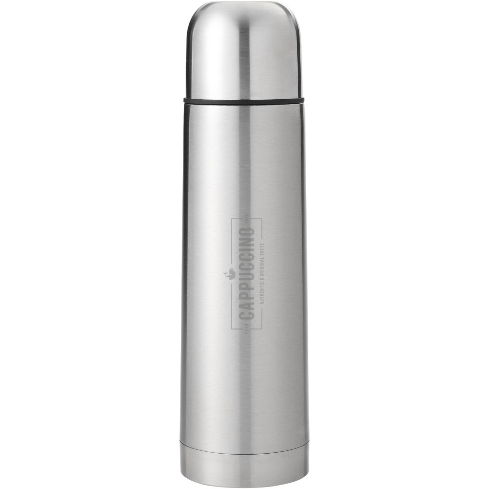 Duplafalú termosz pohár alakú tetővel. Egy kézzel használható, nyomógombos kiöntő, amely automatikusan bezár, ha a poharat rácsavarja a termosz tetejére. Kapacitás 750 ml.