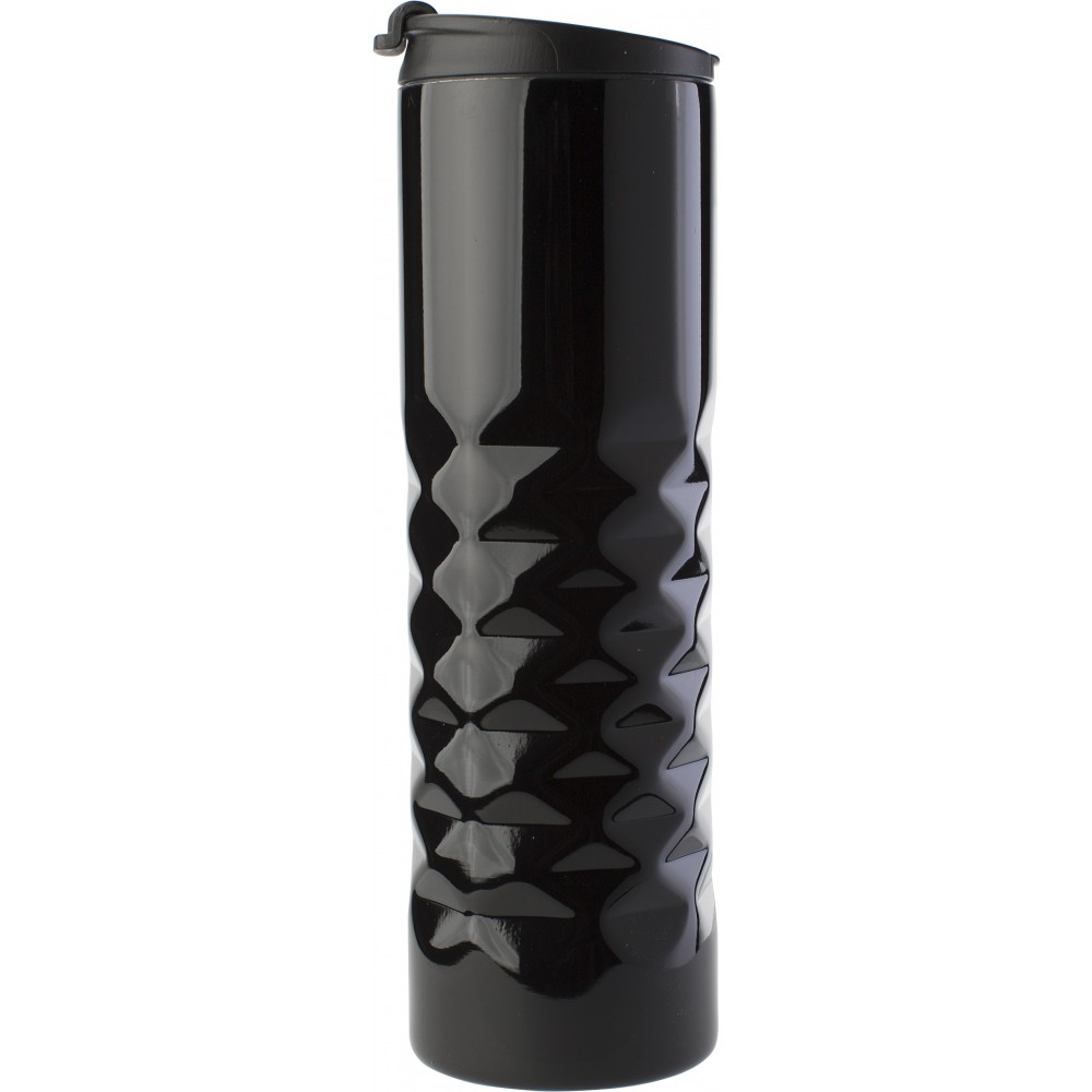 Duplafalú termoszbögre gyémánt mintázattal. Nem szivárgásmentes. Mosogatógépben nem tisztítható. 460 ml. Rozsdamentes acél és BPA-mentes műanyag.
