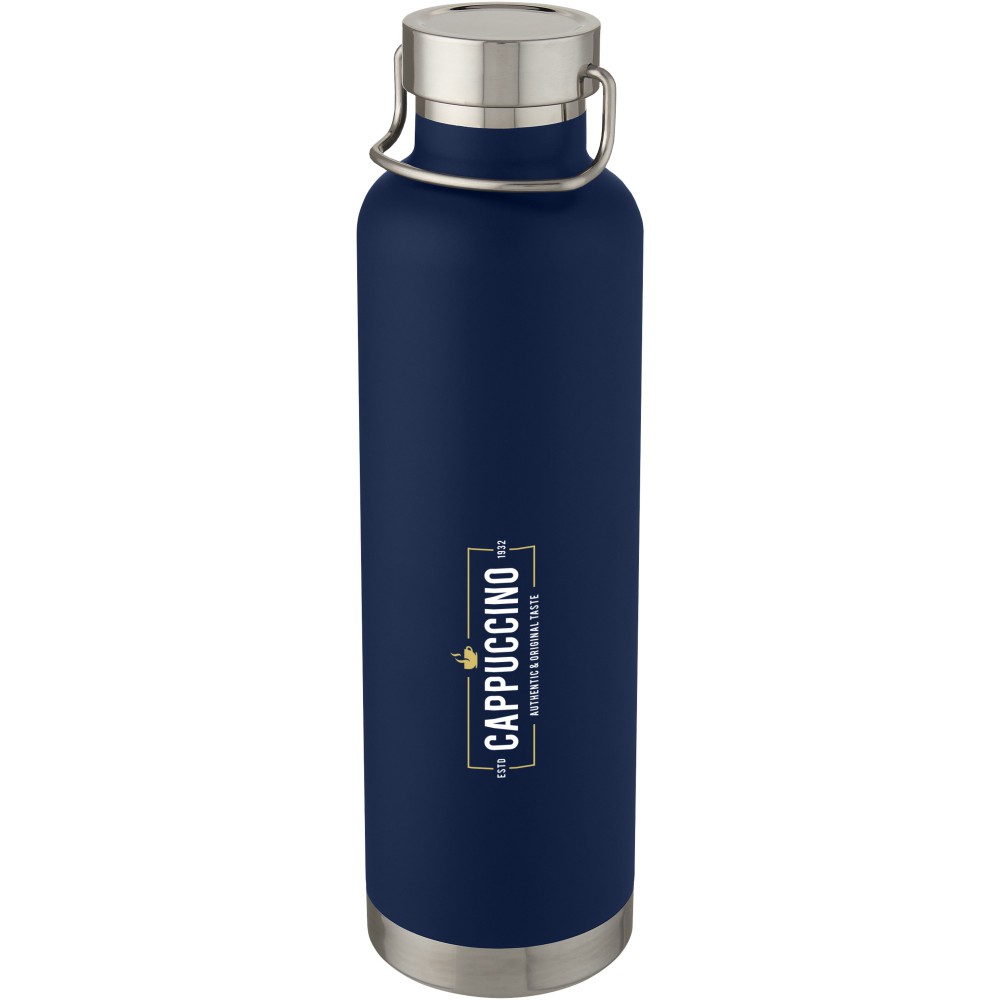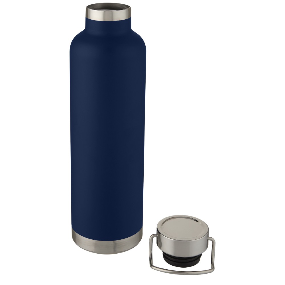 Nagy, duplafalú sportpalack 18/8-as rozsdamentes acél vákuumkonstrukcióval és rézszigeteléssel, amely több órán keresztül melegen vagy hidegen tartja az italokat. A konstrukció megakadályozza a páralecsapódást a palack külső oldalán, és a trendi porfújt bevonat extra tartóssá teszi. Rozsdamentes acél, csavaros fedél tartós, rozsdamentes acél fogóval. Széles nyílás a könnyű feltöltéshez, öntéshez és tisztításhoz. BPA-mentes, a német élelmiszerbiztonsági törvény (LFGB) szerint tesztelt és jóváhagyott. Ftaláttartalomra tesztelve és jóváhagyva a REACH előírásai szerint. Jégkockákhoz tökéletes. Szivárgásmentes. Szénsavas italokkal nem használható. Mosogatógépben nem mosható és mikrohullámú sütőben történő melegítésre nem alkalmas. Űrtartalom: 1 l. Újrahasznosított karton díszdobozban.