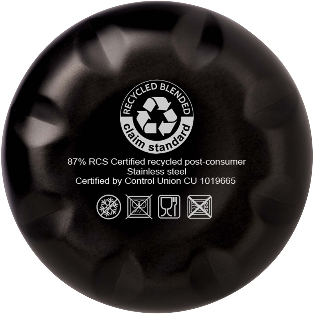 Vákuumszigetelt, RCS tanúsítvánnyal rendelkező, újrahasznosított rozsdamentes acél palack ikonikus dizájnnal, amely több órán keresztül tartja melegen vagy hidegen az italokat. A legtöbb pohártartóba illeszkedő talppal ellátott, elegáns megjelenésű vizespalack tökéletes promóciós termék. A német élelmiszer-biztonsági jogszabályok (LFGB) szerint, valamint a REACH-szabályozásnak megfelelően ftalát-tartalomra tesztelt és jóváhagyott. Űrtartalma: 500 ml. Újrahasznosított kartonból készült díszdobozban szállítjuk.