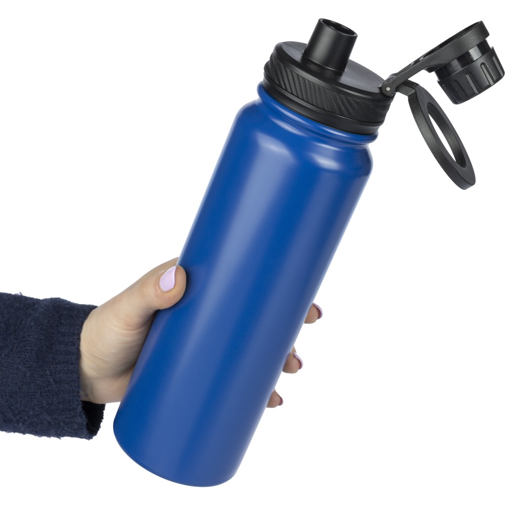 800 ml-es duplafalú palack. A belső 304-es, a külső 201-es rozsdamentes acélból készült. Csavaros PP kupakkal, mely fogantyúként és erős, mágneses telefontartóként is használható. Mosogatógépben nem tisztítható. Csomagolása barna papírdoboz.