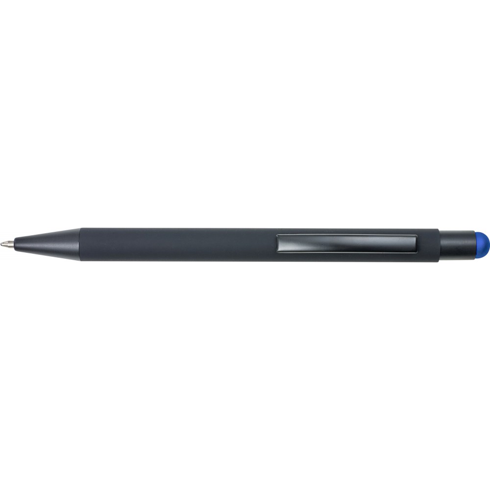 Golyóstoll színes érintővel, kék tollbetéttel és színes belső felülettel. ABS műanyag és alumínium.
