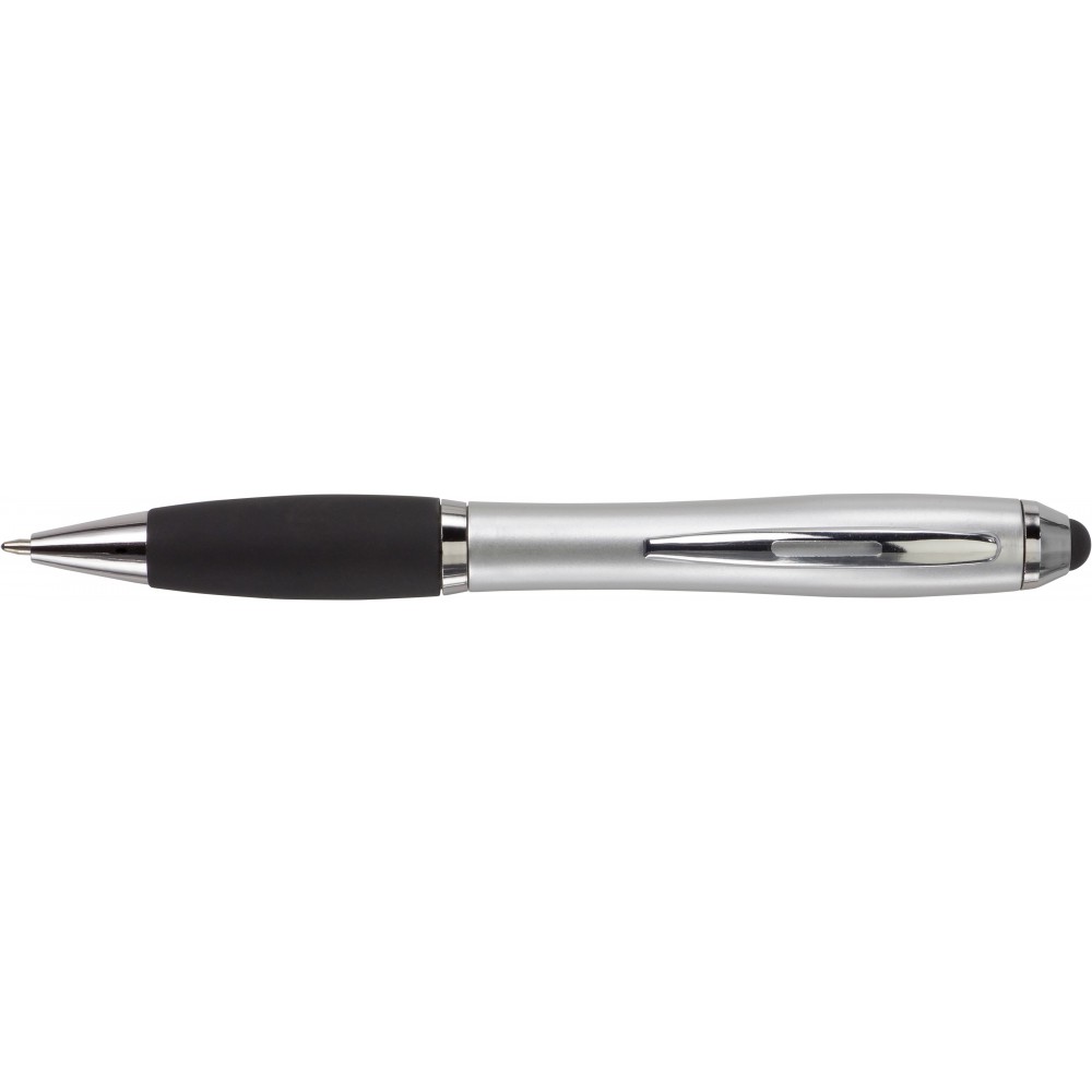 Érintős golyóstoll fekete tollbetéttel. A tetején lévő gumi segítségével érintőképernyős eszközökön használható.