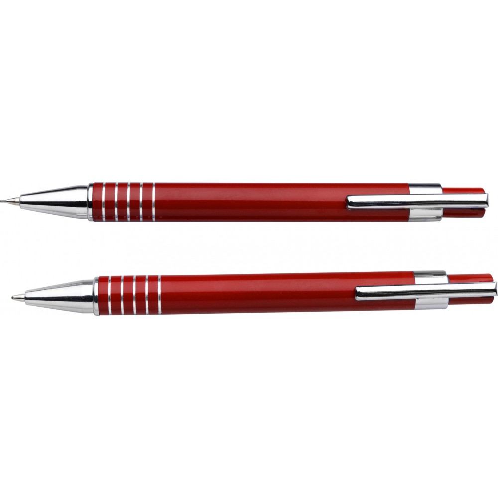 Tollkészlet. Lakkozott felületű golyóstoll fekete tollbetéttel és töltőceruza, színben hozzáillő dobozban.