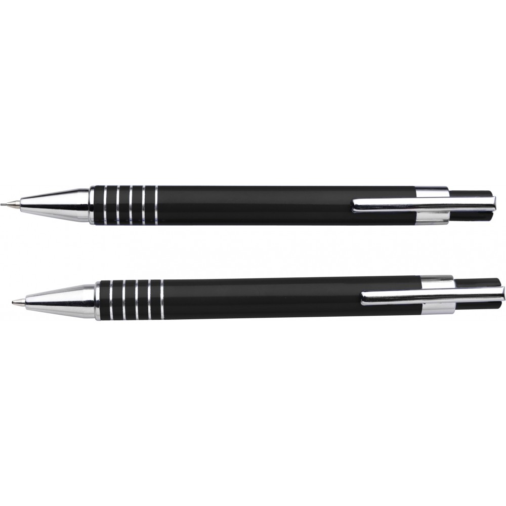 Tollkészlet. Lakkozott felületű golyóstoll fekete tollbetéttel és töltőceruza, színben hozzáillő dobozban.