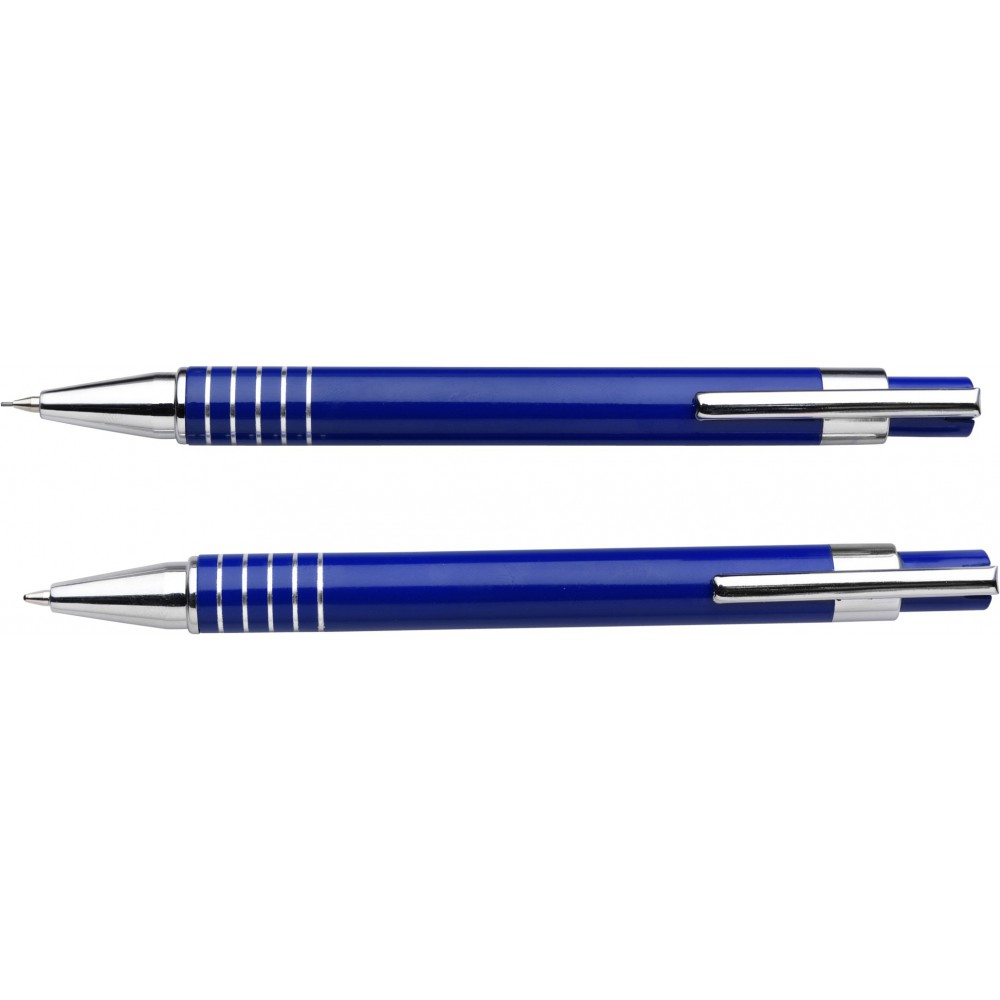 Fém tollkészlet fém dobozban, kék