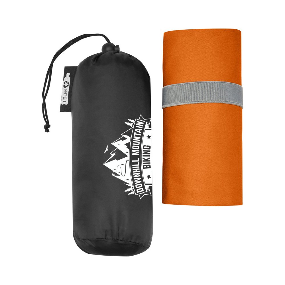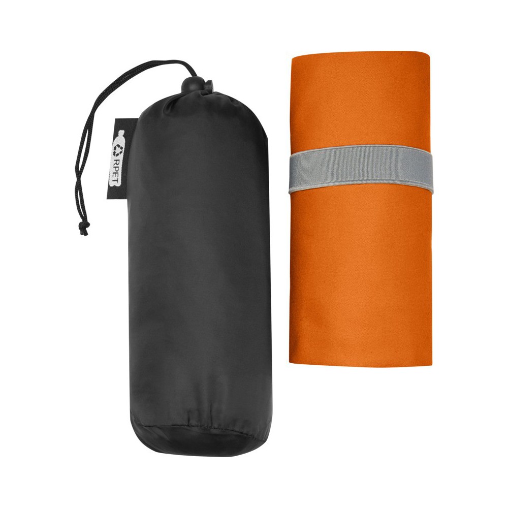Ez a sporttörölköző nagyon jó nedvszívó, könnyű és gyorsan szárad. Ha a törölközőt összehajtjuk és gumiszalaggal rögzítjük, kis mérete miatt alkalmas edzőterembe, uszodába, vagy kempingezésre. A törölköző 130 x 80 cm méretű, 200 gr/m2-es újrahasznosított PET poliamidból készült, mosógépben 40°C-on mosható. Újrahasznosított PET műanyagból készült tároló tasakkal (20 x 8,5 cm) szállítjuk, amely remek helyet biztosít a logó nyomtatásához.