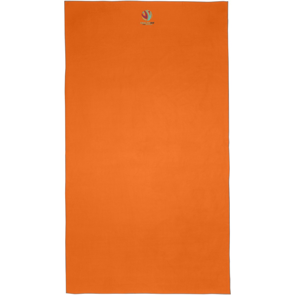 A Pieter sporttörülköző nagyon jó nedvszívó, könnyű, gyorsan szárad, az anyaga pedig tartós és rendkívül puha. Ha a törölközőt összehajtjuk és gumiszalaggal rögzítjük, kis méretűre csomagolható, így alkalmas arra, hogy magunkkal vigyük az edzőterembe, uszodába, vagy ha hátizsákos túrára, esetleg kempingezésre megyünk. A törülköző 100 x 180 cm méretű, 90% GRS újrahasznosított poliészterből és 10% nejlonból készült, és 40 °C-on mosható mosógépben. Újrahasznosított PET műanyagból készült tároló tasakkal (25 x 8,5 cm) szállítjuk.