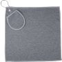 rPET golftörölköző tartozék labdatartó tokkal. A fém kampó segítségével könnyen a táskához csatlakoztatható. Belül rPET címkével. Mosógépben alacsony hőmérsékleten mosható.