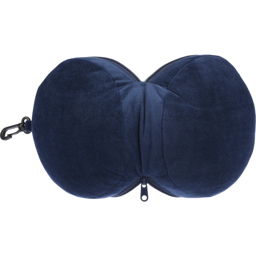 Poliészter utazópárna szett puha poliészter és PP pamut töltettel. Szemmaszkként, és párnaként is használható. PP karabinerrel.