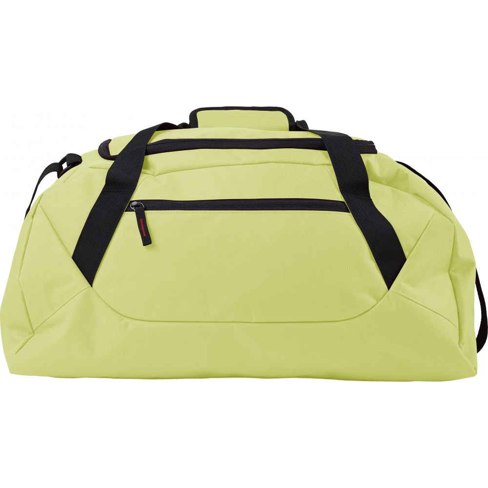 Utazó- sporttáska cipzáros főrésszel és elsőzsebbel, állítható vállpánttal. 600D poliészter.