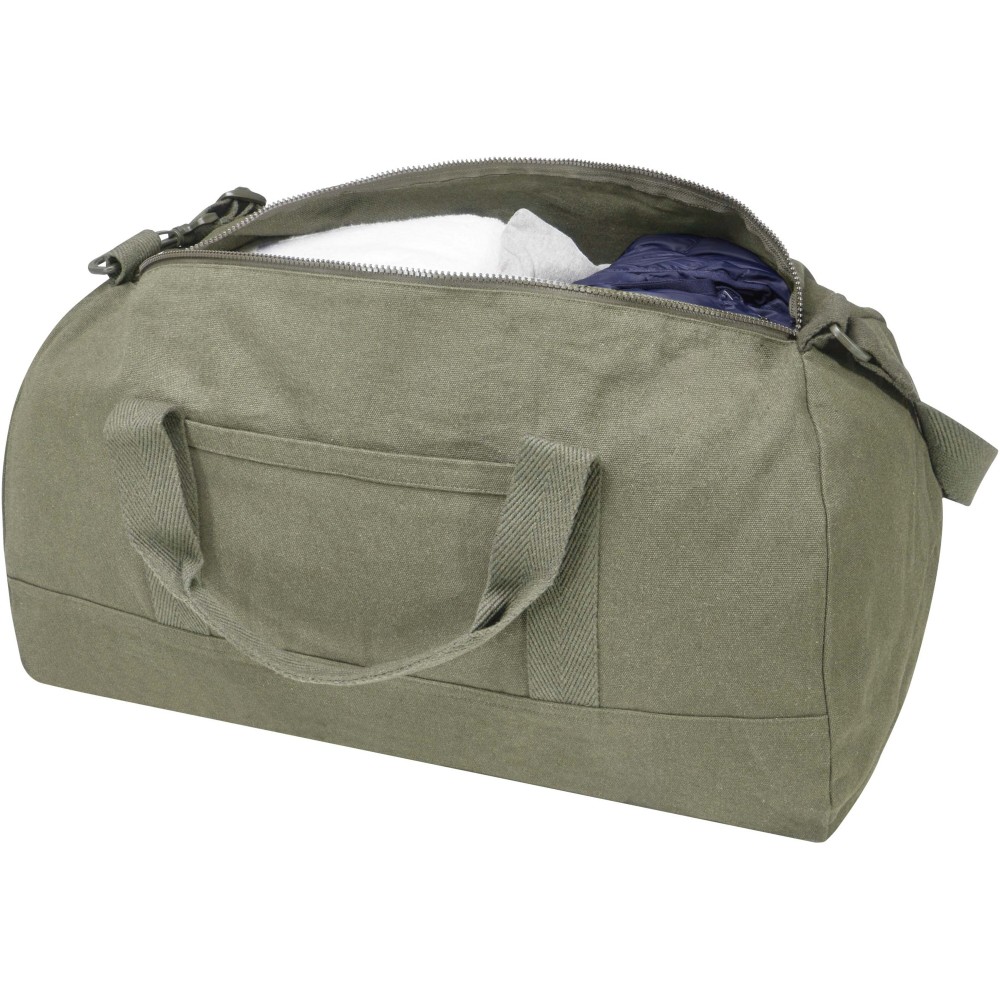 A Porter sporttáska 500 g/m2 újrahasznosított pamutból és poliészterből készült, tágas fő rekesszel a nagyobb tárgyak optimális tárolására, valamint egy kisebb elülső zsebbel, amely ideális például útlevél vagy mobiltelefon elhelyezésére. A táska kézben vihető a két rövid fogantyú segítségével, vagy a levehető és állítható vállpánttal, amely maximális kényelmet biztosít viselés közben. A sporttáska Cyclo újrahasznosított szálakat tartalmaz, amelyek előválogatott hulladékból készülnek - ennek megfelelően alakul a fonal természetes színe is. Ezek a szálak nemcsak a primer nyersanyagok iránti igényt csökkentik, hanem hozzájárulnak a körforgásos gazdaság megvalósításához, elősegítve a hulladék csökkentését és a zárt rendszerű gyártást. Minden táska Aware nyomkövetővel van ellátva, amely QR-kód segítségével lehetővé teszi a termék eredetének és útjának nyomon követését. Ez az innovatív megoldás növeli az ellátási lánc átláthatóságát, és erősebb kapcsolatot teremt a vásárló és a gyártási fol