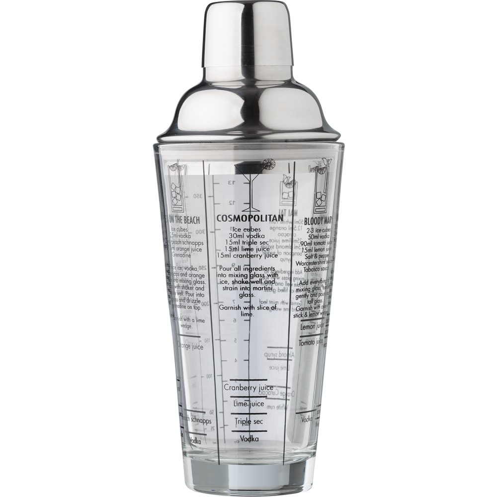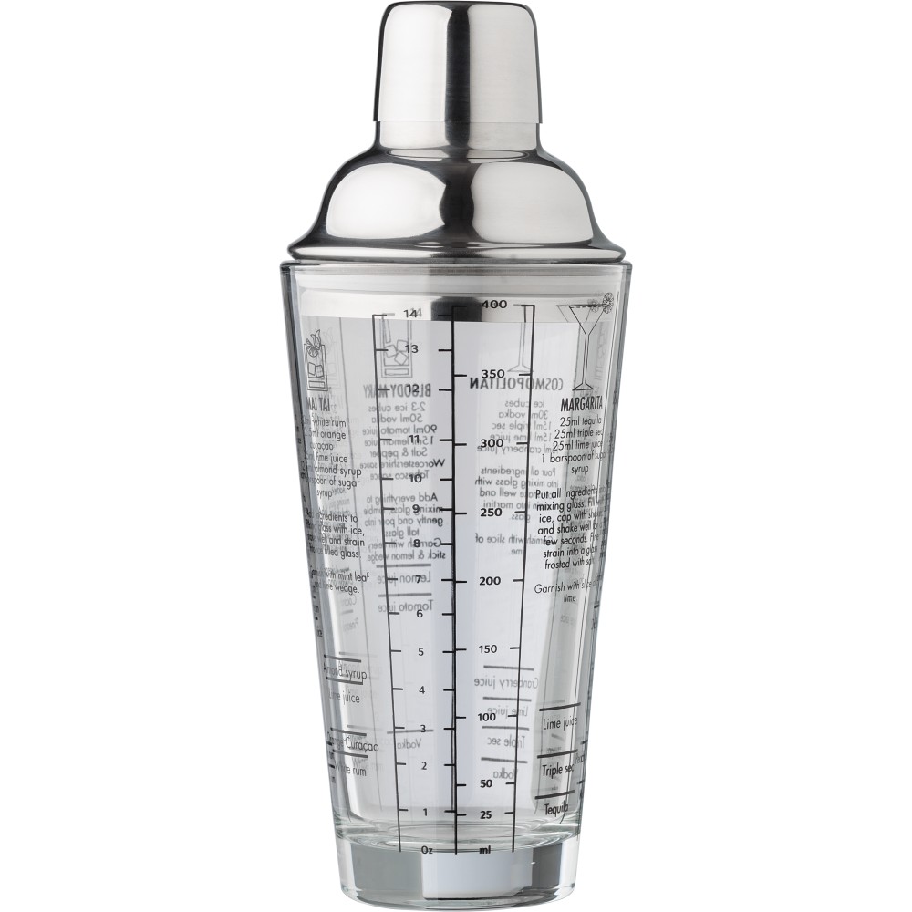 Üveg koktél shaker, 400 ml, átlátszó