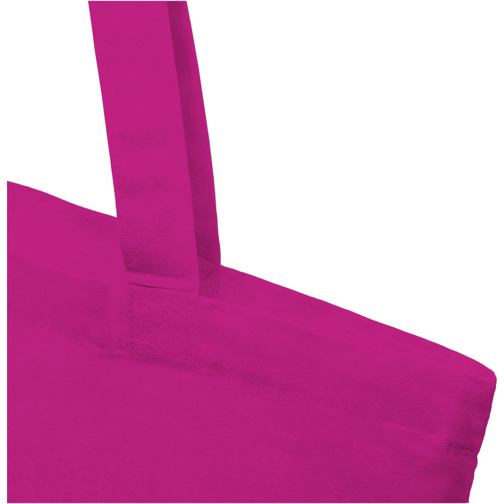 A Carolina táska könnyű és pénztárcabarát, így kiválóan alkalmas reklámhordozó rendezvényeken, konferenciákon vagy kiállításokon. A nagy fő rekesz elegendő helyet biztosít a könnyű tárgyak tárolására, a 30 cm-es vállpántok pedig megkönnyítik a táska szállítását. Fülek magassága 30 cm. 100 g/m2 pamut.