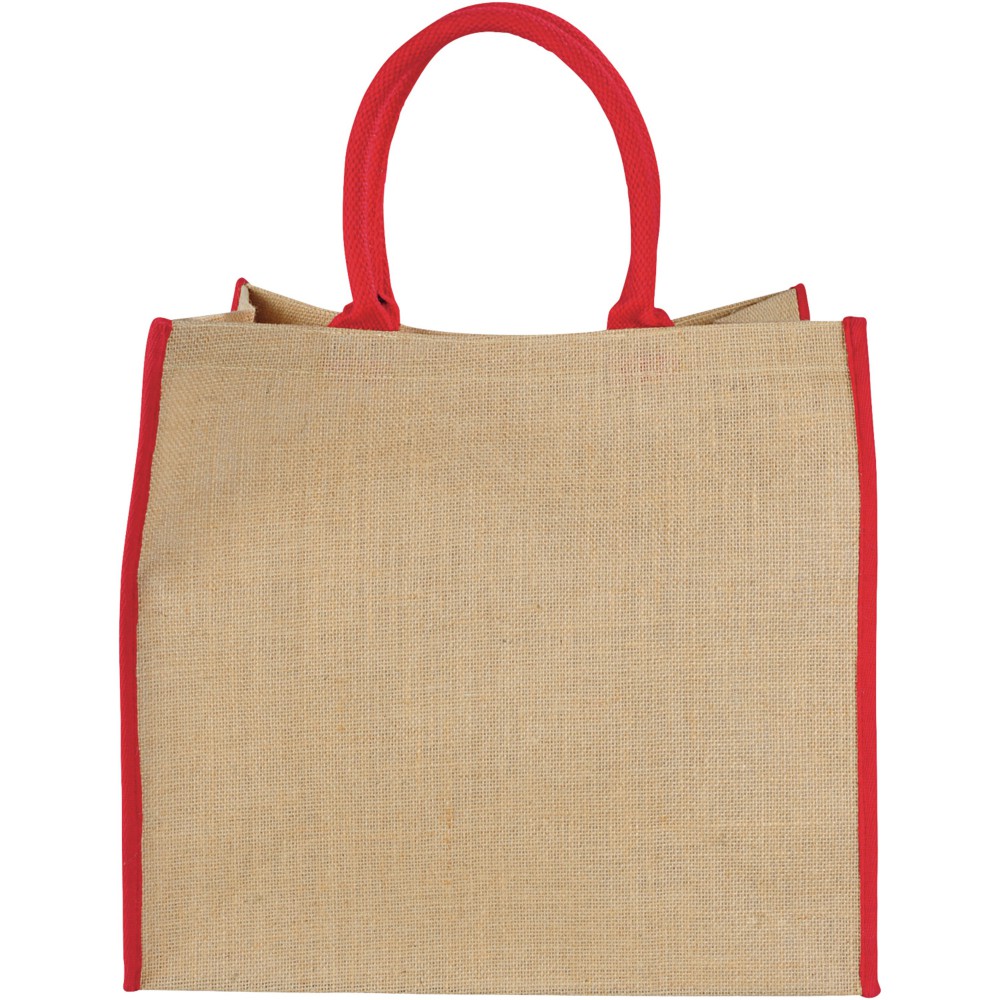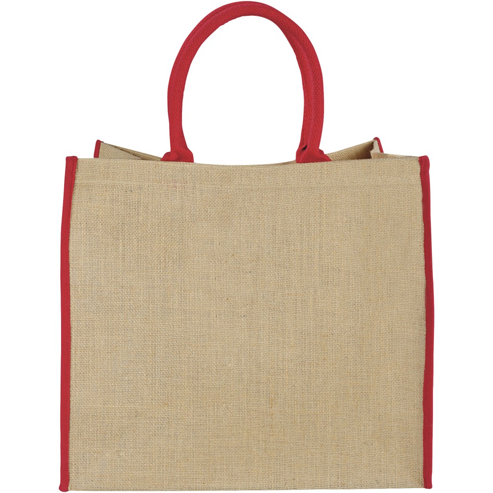 The Large juta bevásárlótáska tépőzáras kialakítással. A lehajtható fülek magassága 17 cm. Megjegyzés: finom grafikát vagy szöveget nem, csak vastag, erős nyomatott lehet az anyagon alkalmazni. Juta.