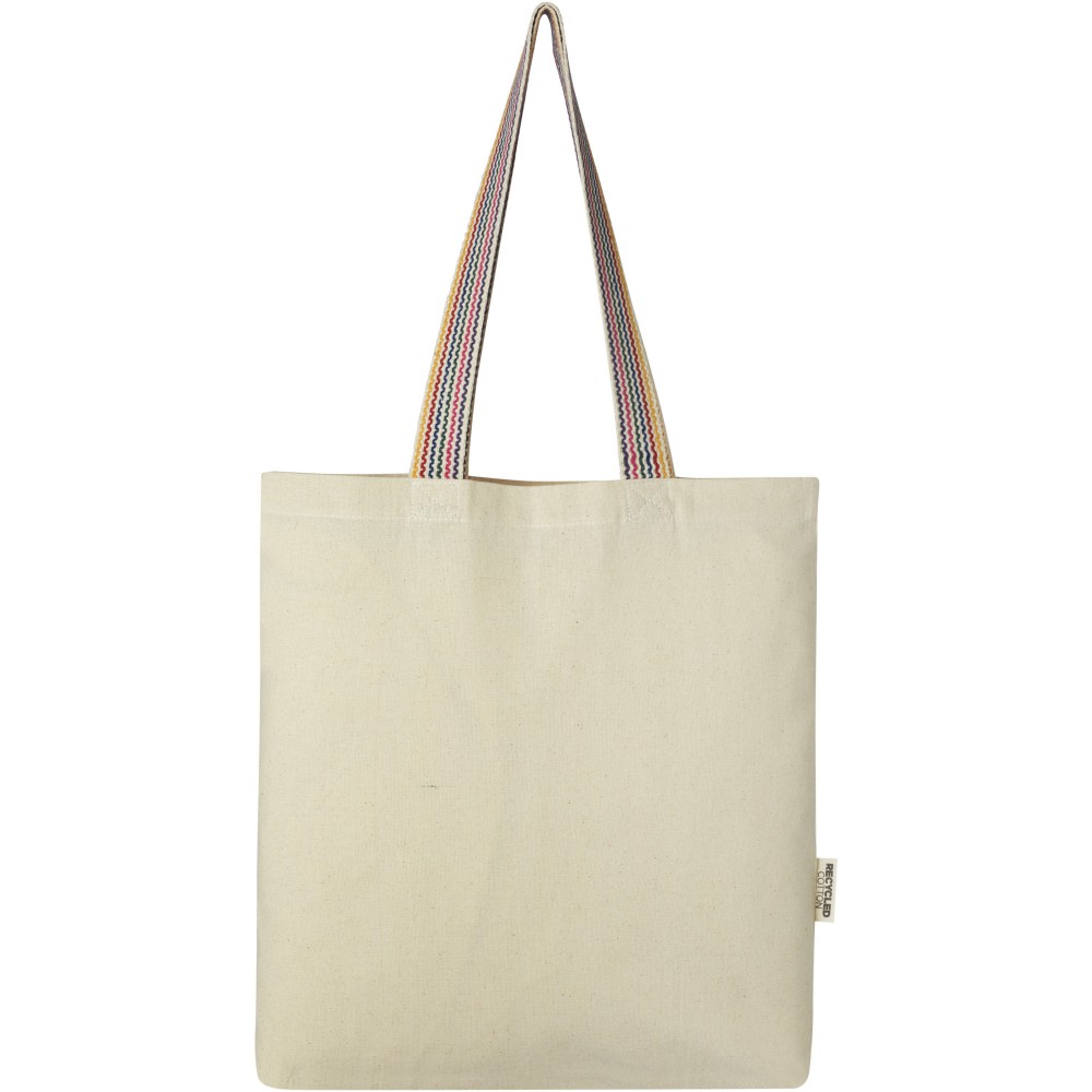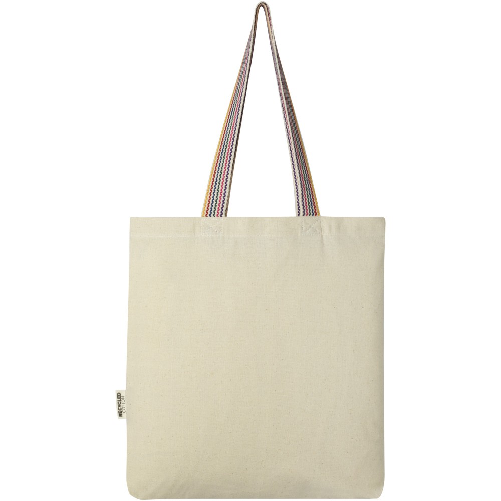 A Rainbow 180 g/m2-es bevásárlótáska a hagyományos pamuttáska frissebb változata. Ez az újrahasznosított pamutból készült táska 25 cm-es, szivárványszínű, szövött fülekkel és 3,5 cm-es széles talppal rendelkezik, amely egy kicsit több tárolóhelyet biztosít.