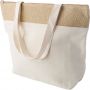 Hűtőtáska alumínium fólia belsővel és 2 mm-es habszivaccsal. Pamut juta, 200 g/m2.