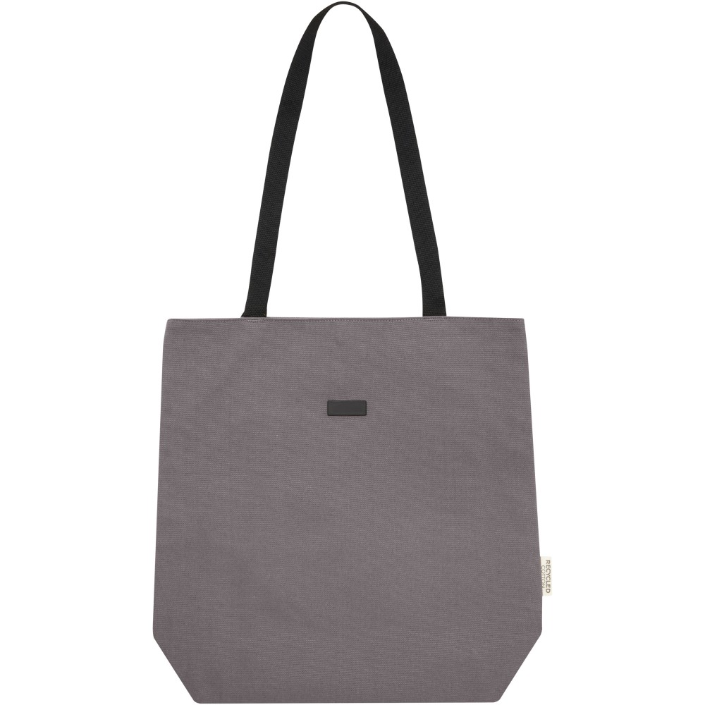 A táska GRS tanúsítvánnyal rendelkező újrahasznosított vászonból és GRS tanúsítvánnyal rendelkező RPET béléssel készült. Ez a sokoldalú táska egy bélelt, 15 -os laptoprekesszel és két belső tartóval rendelkezik a telefon, a pénztárca vagy a kiegészítők számára, valamint könnyű gombos záródással és kényelmes pamut fogantyúkkal. Fémlapja gravírozható.