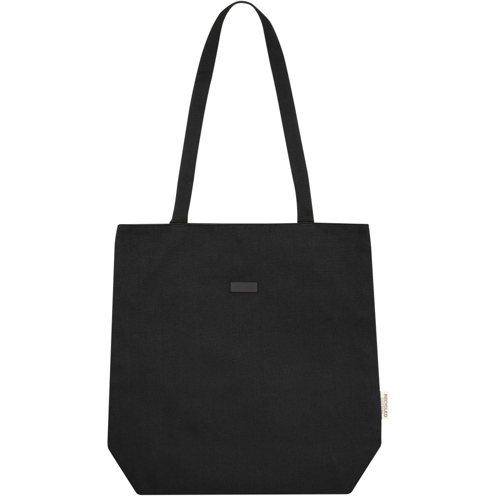 A táska GRS tanúsítvánnyal rendelkező újrahasznosított vászonból és GRS tanúsítvánnyal rendelkező RPET béléssel készült. Ez a sokoldalú táska egy bélelt, 15 -os laptoprekesszel és két belső tartóval rendelkezik a telefon, a pénztárca vagy a kiegészítők számára, valamint könnyű gombos záródással és kényelmes pamut fogantyúkkal. Fémlapja gravírozható.