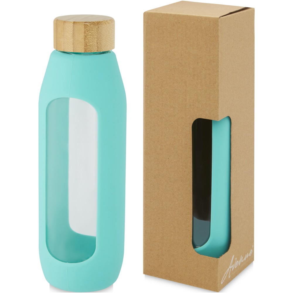 Környezetbarát újrafelhasználható vizes palack. A palack tartós boroszilikát üvegből készült, amely megőrzi a víz tiszta, igazi friss ízét, és nem tartalmaz káros vegyszereket. Szilikon markolattal és biobambuszból készült szivárgásmentes fedéllel. A német élelmiszerbiztonsági jogszabályok (LFGB) szerint tesztelték és jóváhagyták, és a REACH előírásai szerint tesztelték a ftaláttartalmat. Szivárgásmentes. Szénsavas italokkal nem használható. Mosogatógépben nem mosható és mikrohullámú sütőben történő melegítésre nem alkalmas. Űrtartalom: 600 ml. Újrahasznosított karton díszdobozban.