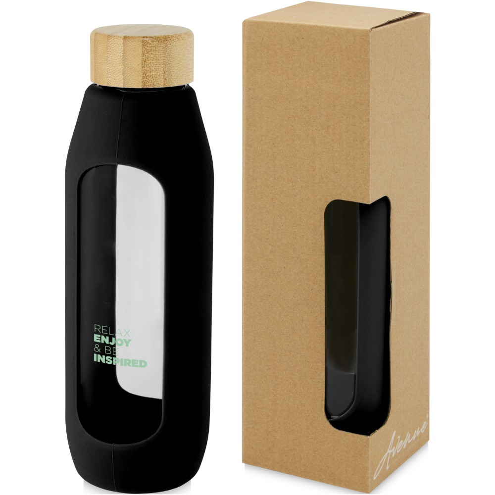 Környezetbarát újrafelhasználható vizes palack. A palack tartós boroszilikát üvegből készült, amely megőrzi a víz tiszta, igazi friss ízét, és nem tartalmaz káros vegyszereket. Szilikon markolattal és biobambuszból készült szivárgásmentes fedéllel. A német élelmiszerbiztonsági jogszabályok (LFGB) szerint tesztelték és jóváhagyták, és a REACH előírásai szerint tesztelték a ftaláttartalmat. Szivárgásmentes. Szénsavas italokkal nem használható. Mosogatógépben nem mosható és mikrohullámú sütőben történő melegítésre nem alkalmas. Űrtartalom: 600 ml. Újrahasznosított karton díszdobozban.