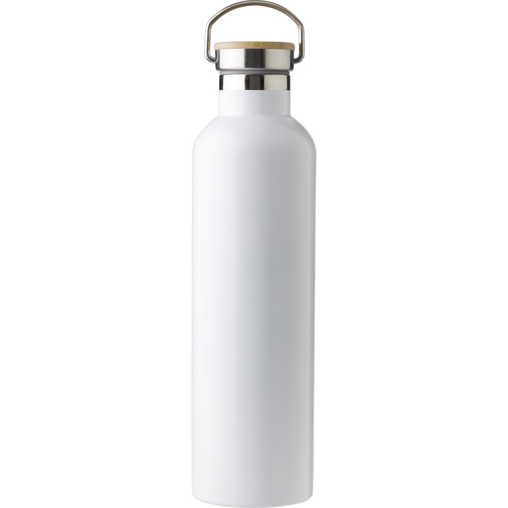 Duplafalú palack bambusz betéttel a kupakon. Rozsdamentes acél. Nagy űrtartalmú palack: 1L.