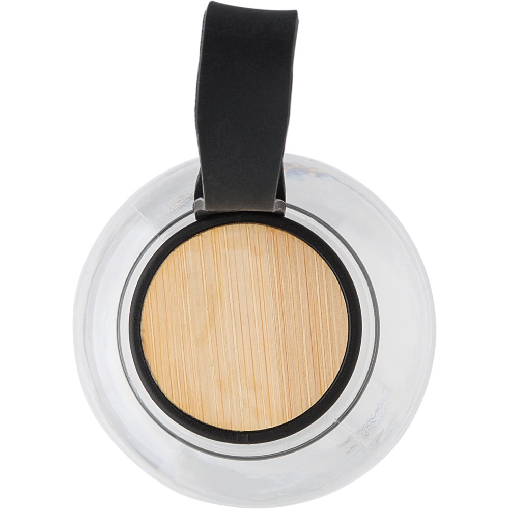 RPET ivópalack (500 ml) PP fedéllel, bambusz részletekkel a felső oldalon. Szilikon hordozópánt. Egyenként újrahasznosított zacskóba csomagolva.