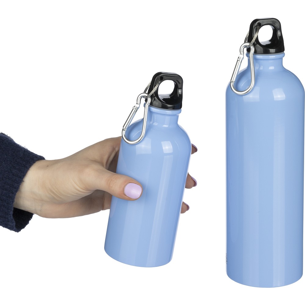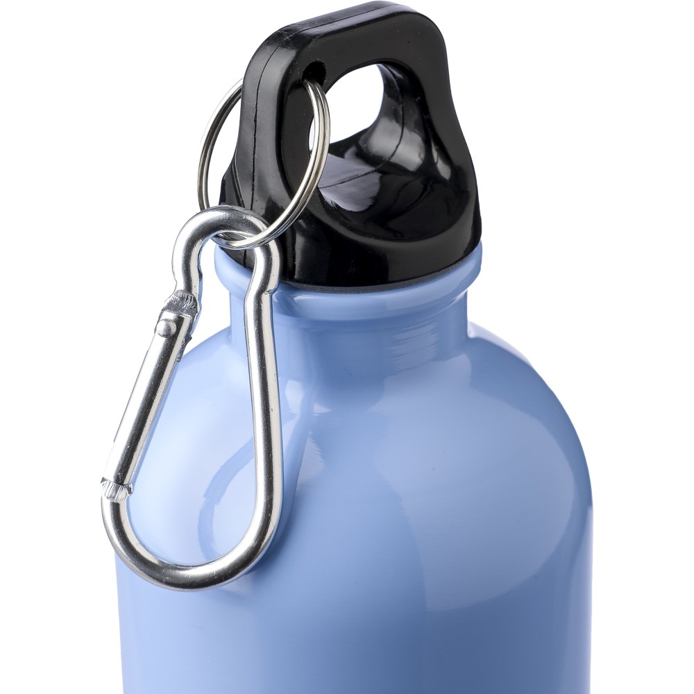 Újrahasznosított rozsdamentes acélból készült 400 ml-es szimplafalú kulacs PP kupakkal és alumínium karabinerrel. Az újrahasznosított anyagra utaló logó a palackra van gravírozva. Mosogatógépben nem tisztítható.
